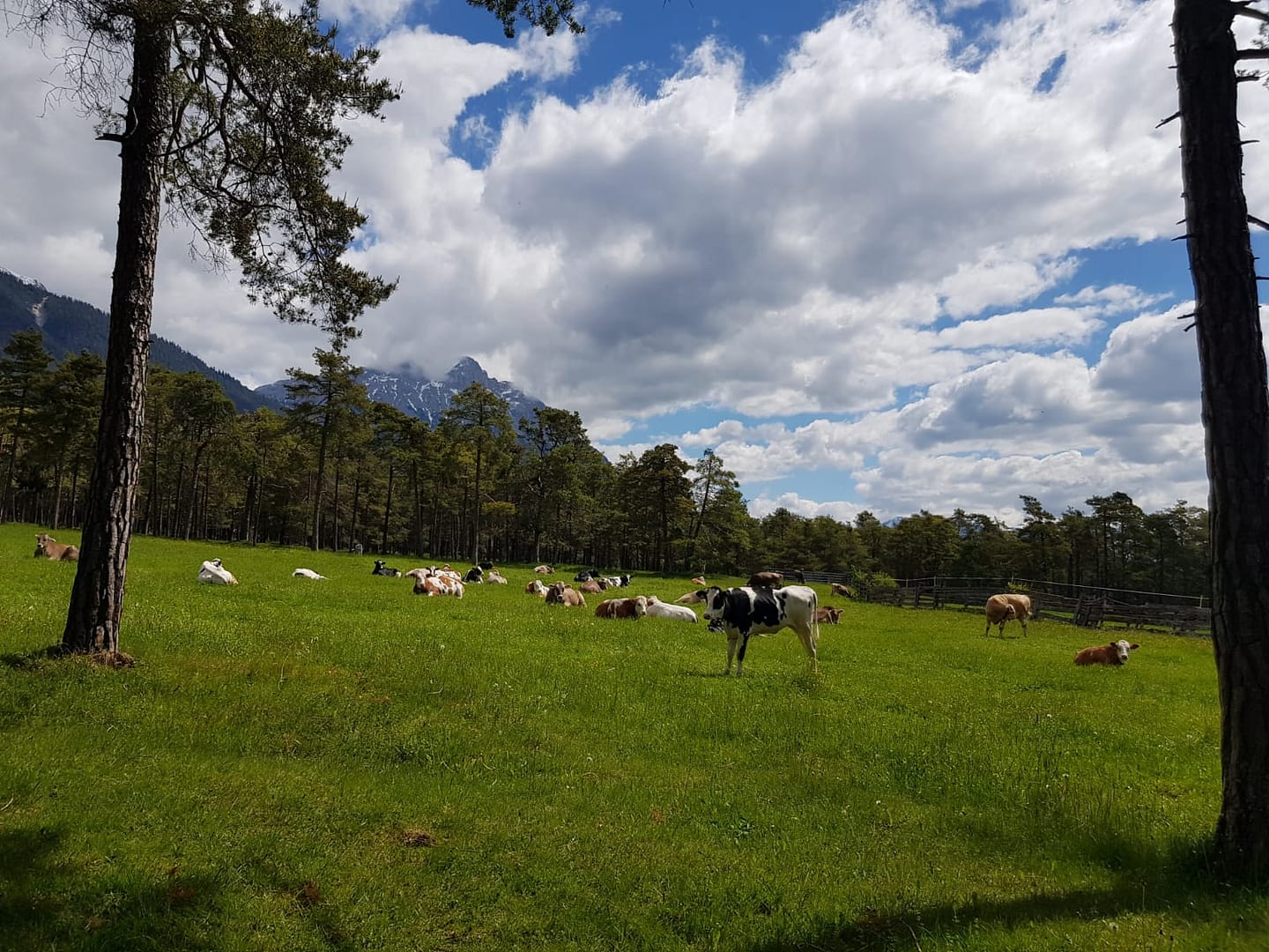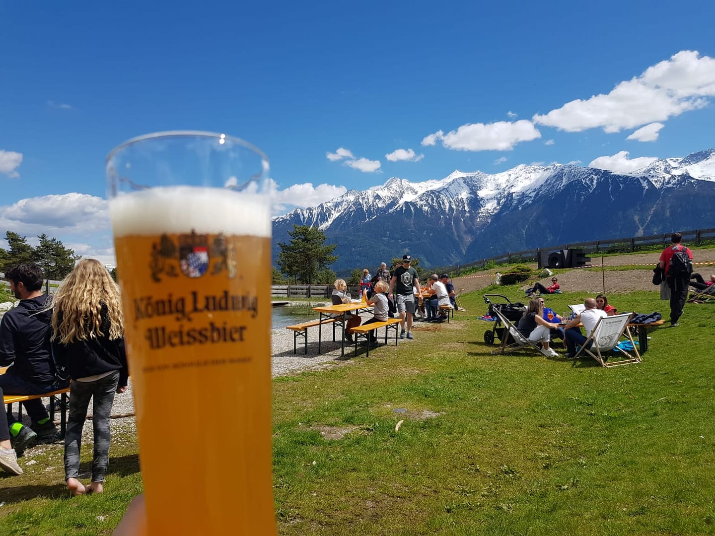 Beim Abstieg sind wir in der urigen Almhütte Stöttlalm eingekehrt, die am Rundwanderweg am Golfplatz Mieming mit einem traumhaften Panoramablick liegt. An der Alm selbst liegt auch ein kleiner See, wo die Kinder einen heiden Spaß hatten, während die Eltern sich mit Kaltgetränken den Tag versüßten.