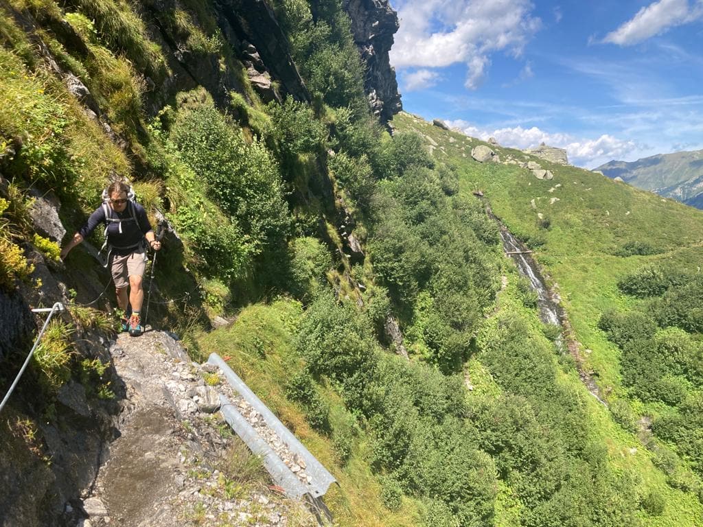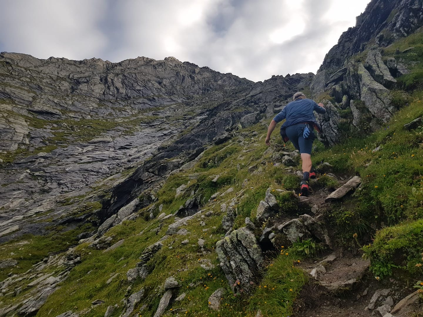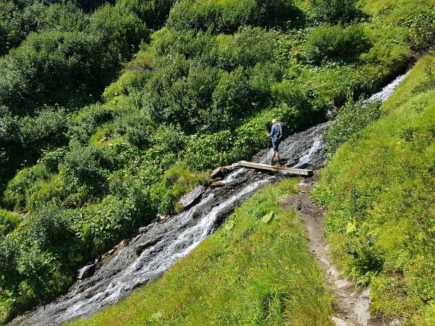 Es ist einer der abwechslungsreichsten Wege, die ich je gegangen bin: Grasige Hänge wechseln sich mit Blockgelände und Geröll ab, während man über schmale Steigen über tiefen Abgründen balanciert strömt das Wasser den Berghängen nur so runter.