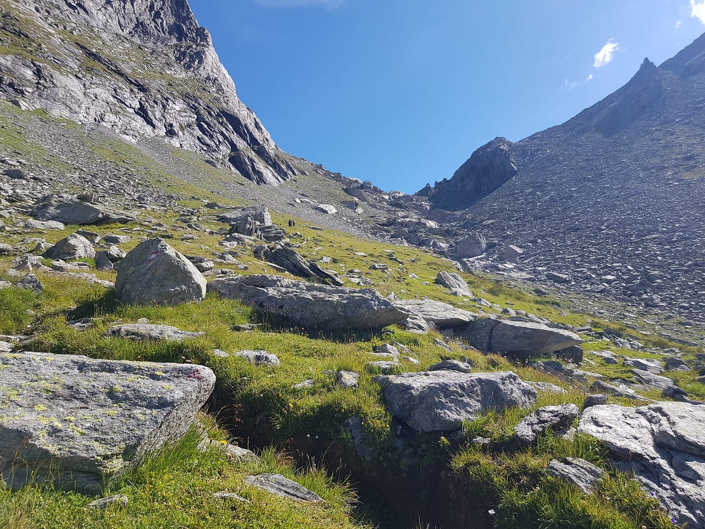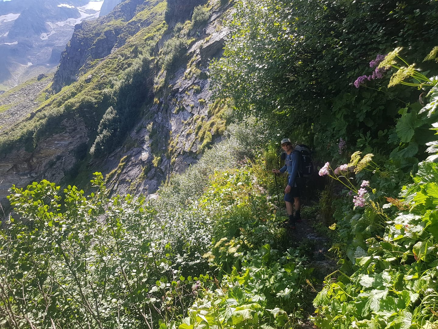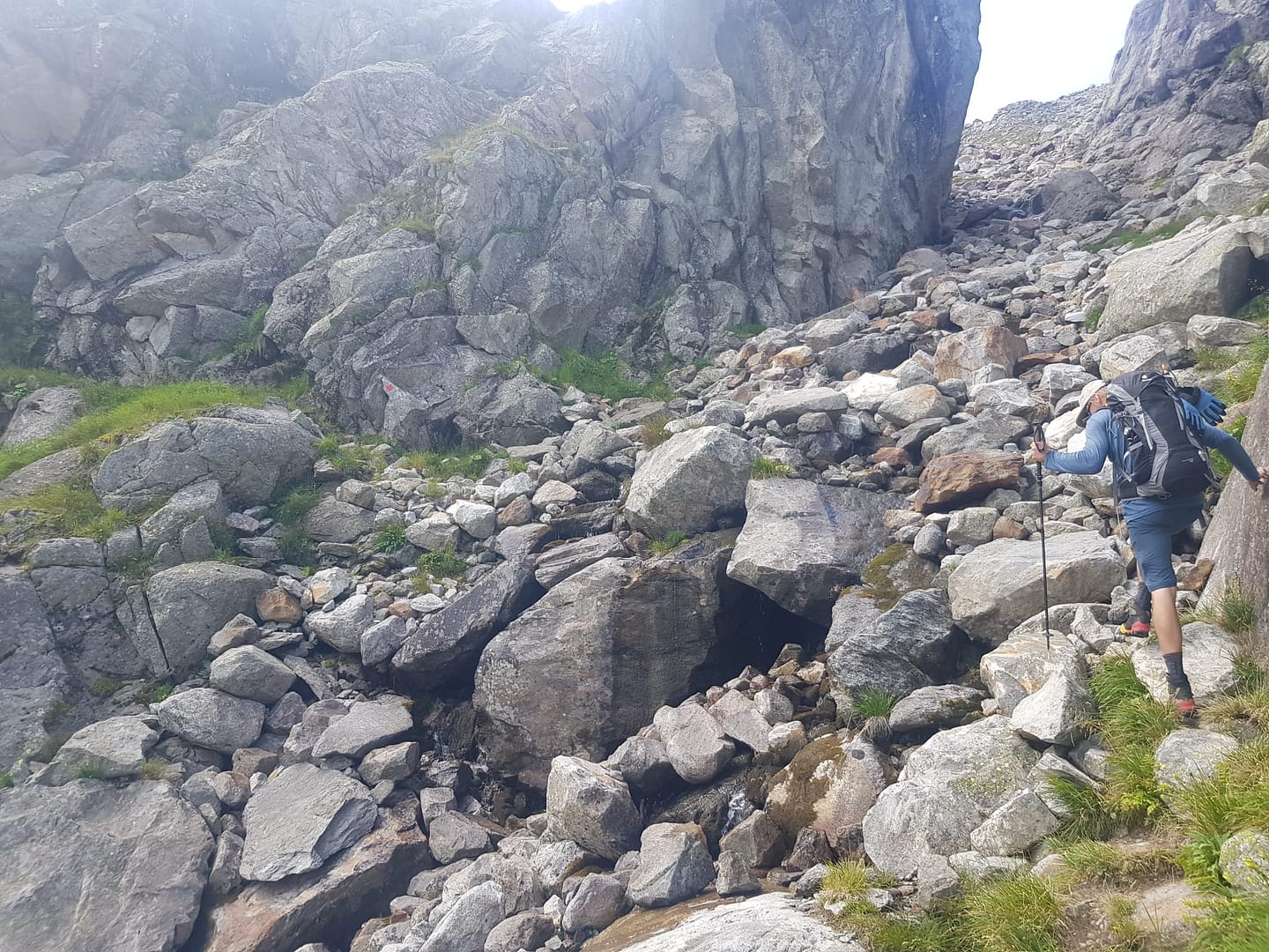 Es ist einer der abwechslungsreichsten Wege, die ich je gegangen bin: Grasige Hänge wechseln sich mit Blockgelände und Geröll ab, während man über schmale Steigen über tiefen Abgründen balanciert strömt das Wasser den Berghängen nur so runter.