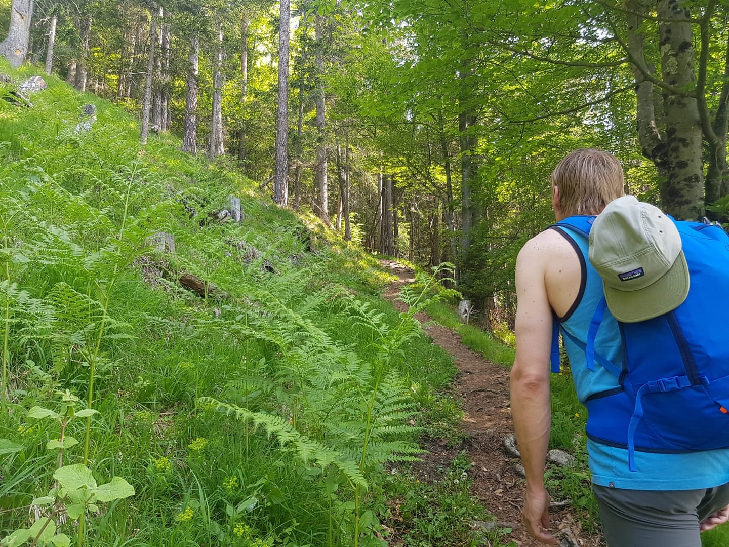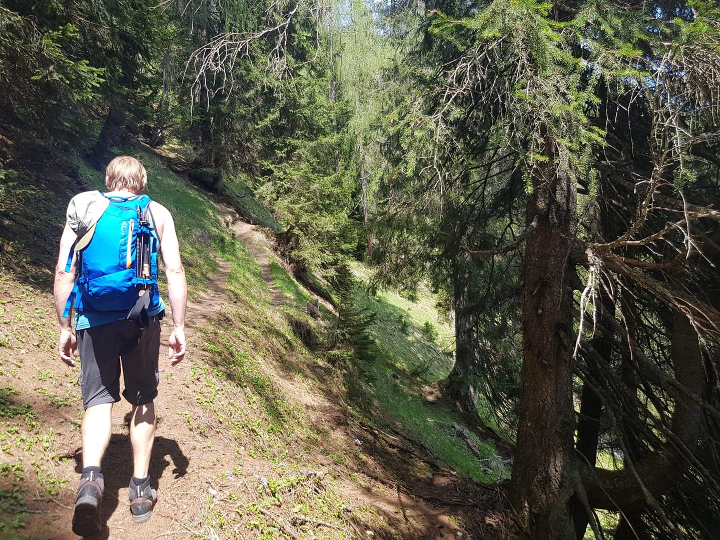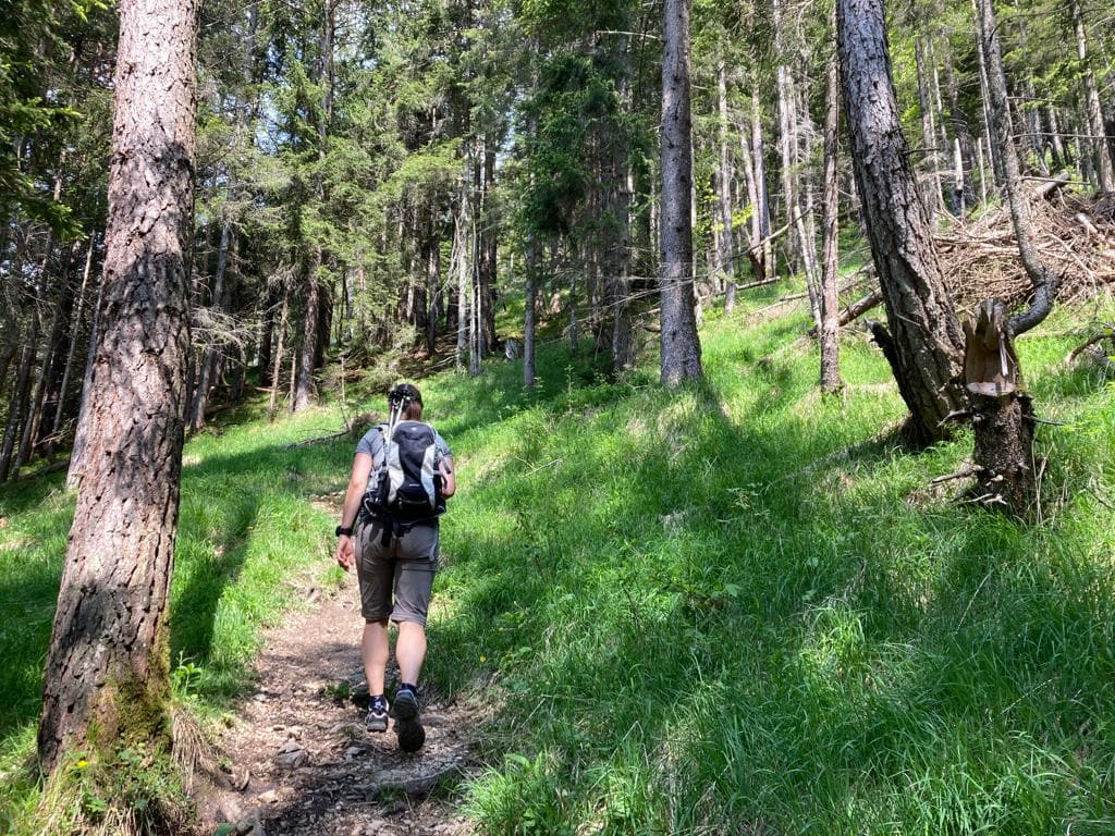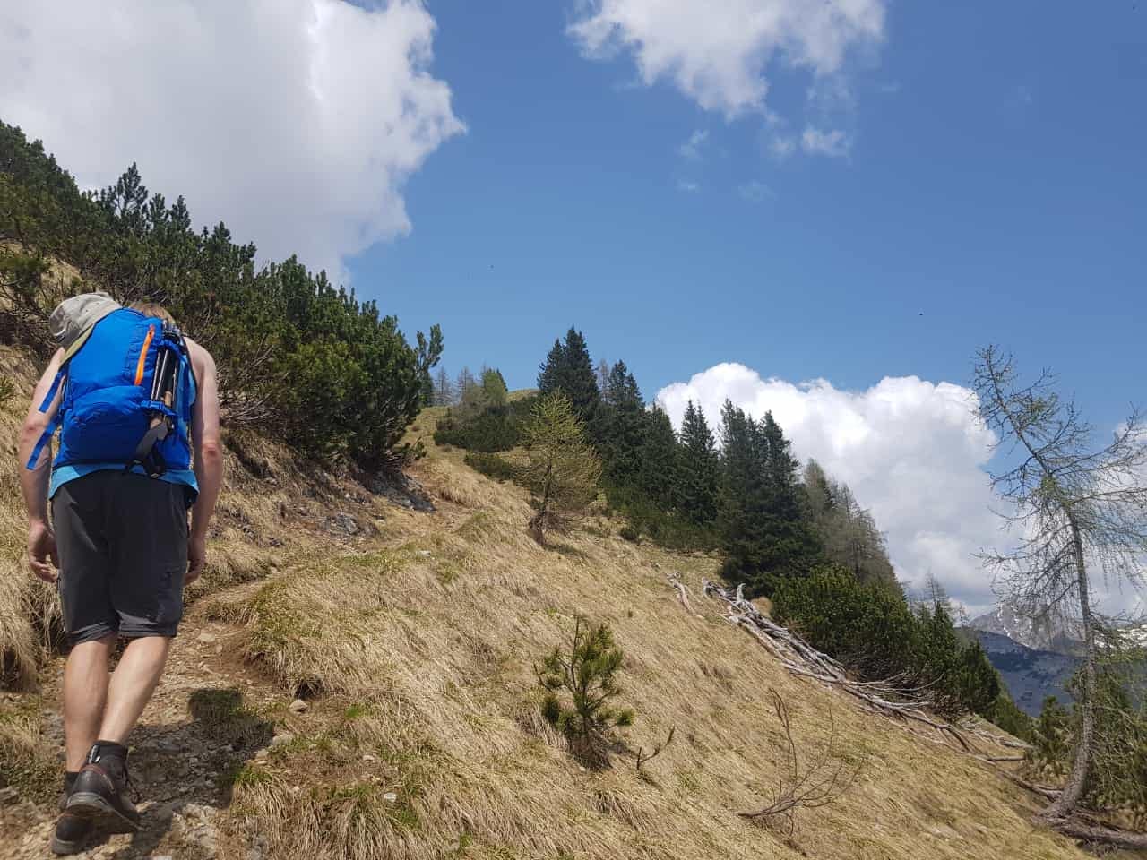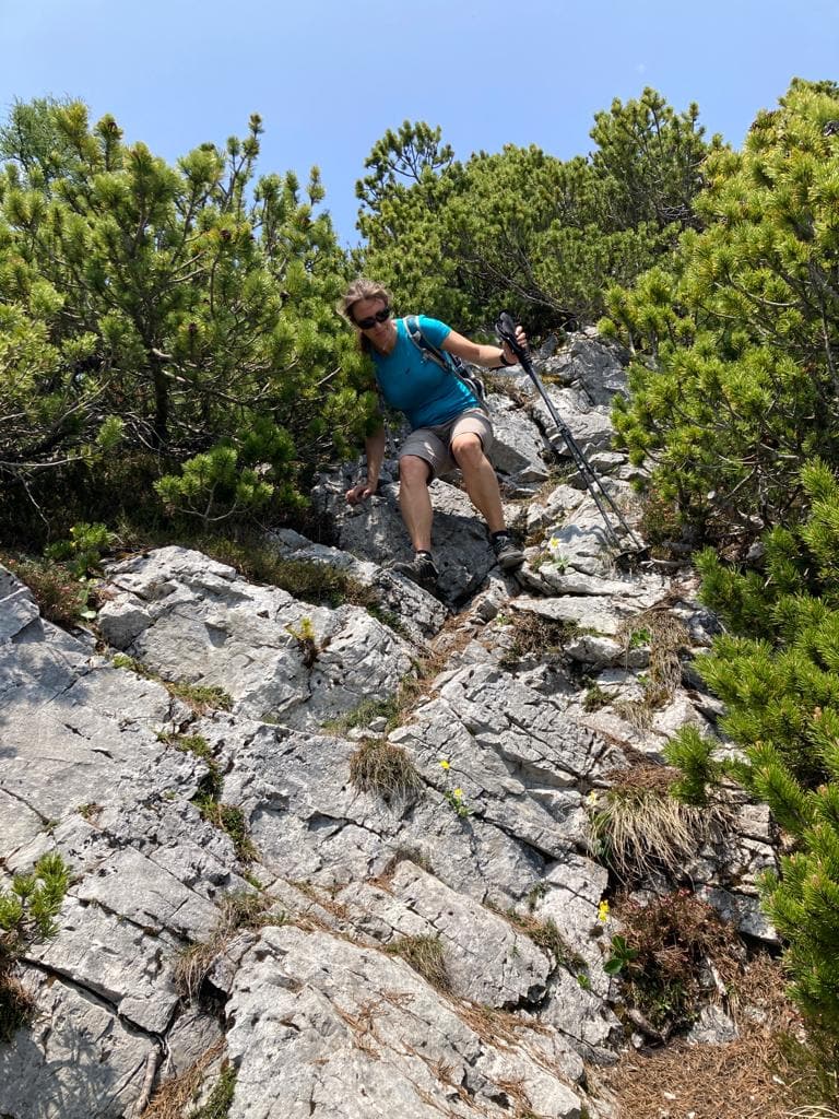 Für den Abstieg haben wir uns was ganz besonders tolles überlegt – naja eigentlich nicht. Vom Gipfel gibt es noch einen alternativen Weg zurück zur Alm. Im obersten und untersten Stück ist kein Weg/Pfad zu erkennen, da geht es mehr nach Gefühl; der Weg ist auch sehr steil, rutschig und verwachsen. Wirklich empfehlen kann ich diese Variante im Abstieg nicht, wenn würde ich dieses Stück im Aufstieg hoch gehen.