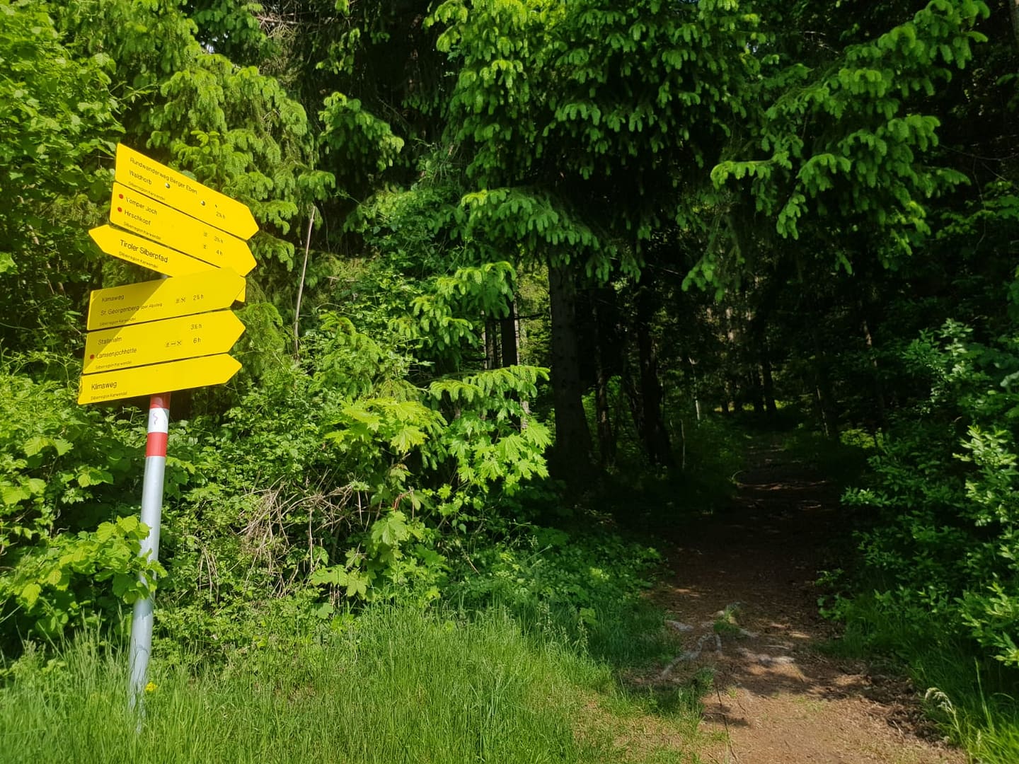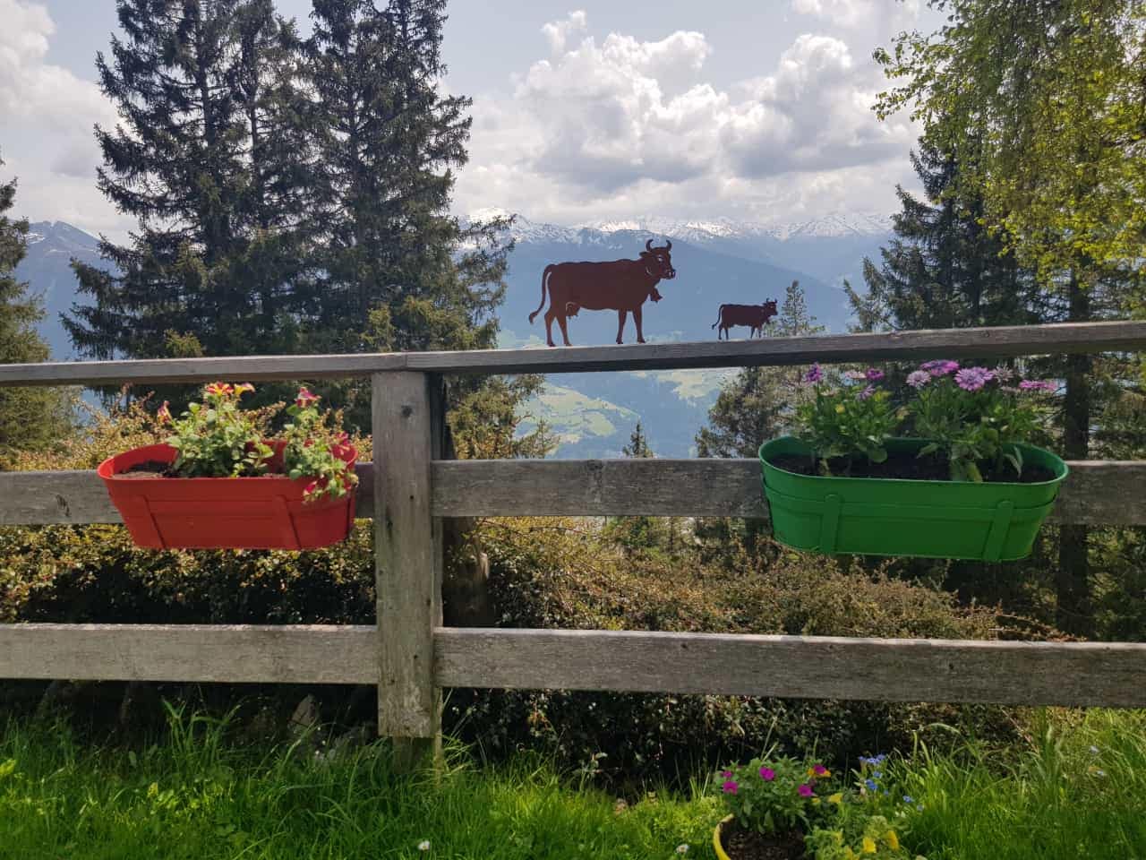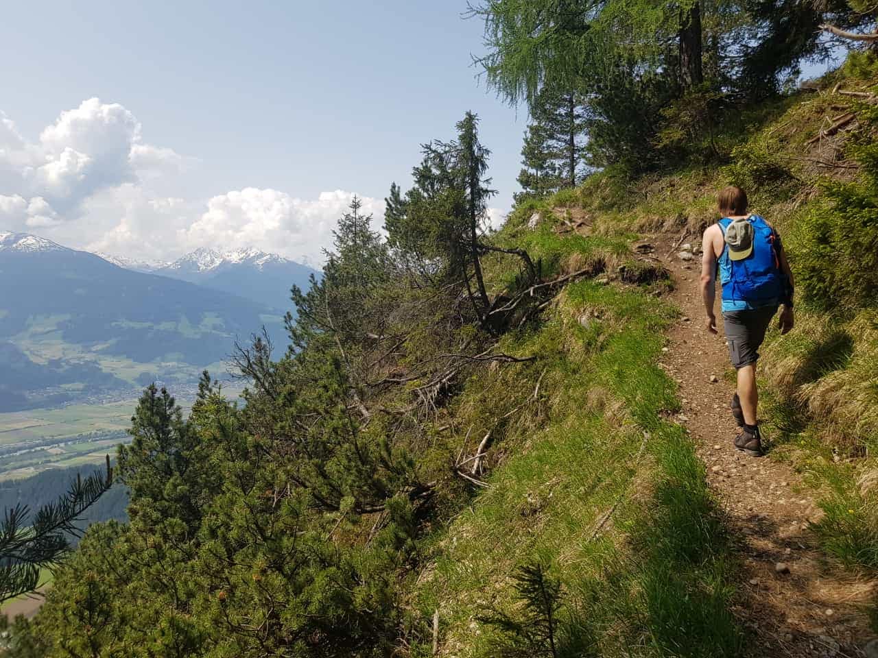 Der Steig wird schmaler und steiler, aber angespornt durch immer wieder schöne Ausblicke in das Inntal geht es weiter rauf. Auf ca. 1.340 m erreichen wir eine Bank, wo wir eine kurze Trinkpause einlegten und den Ausblick genossen. Von hier geht es weiter zum nächsten Wegweiser, bei welchem wir uns rechts halten und wenig später bei der urigen Waldhorbalm auskommen. Die Öffnungszeiten sind bereits auch am Weg unten angekündigt. Mal schnell in den Vorratskasten geschaut, ein Motivationsblick für später.