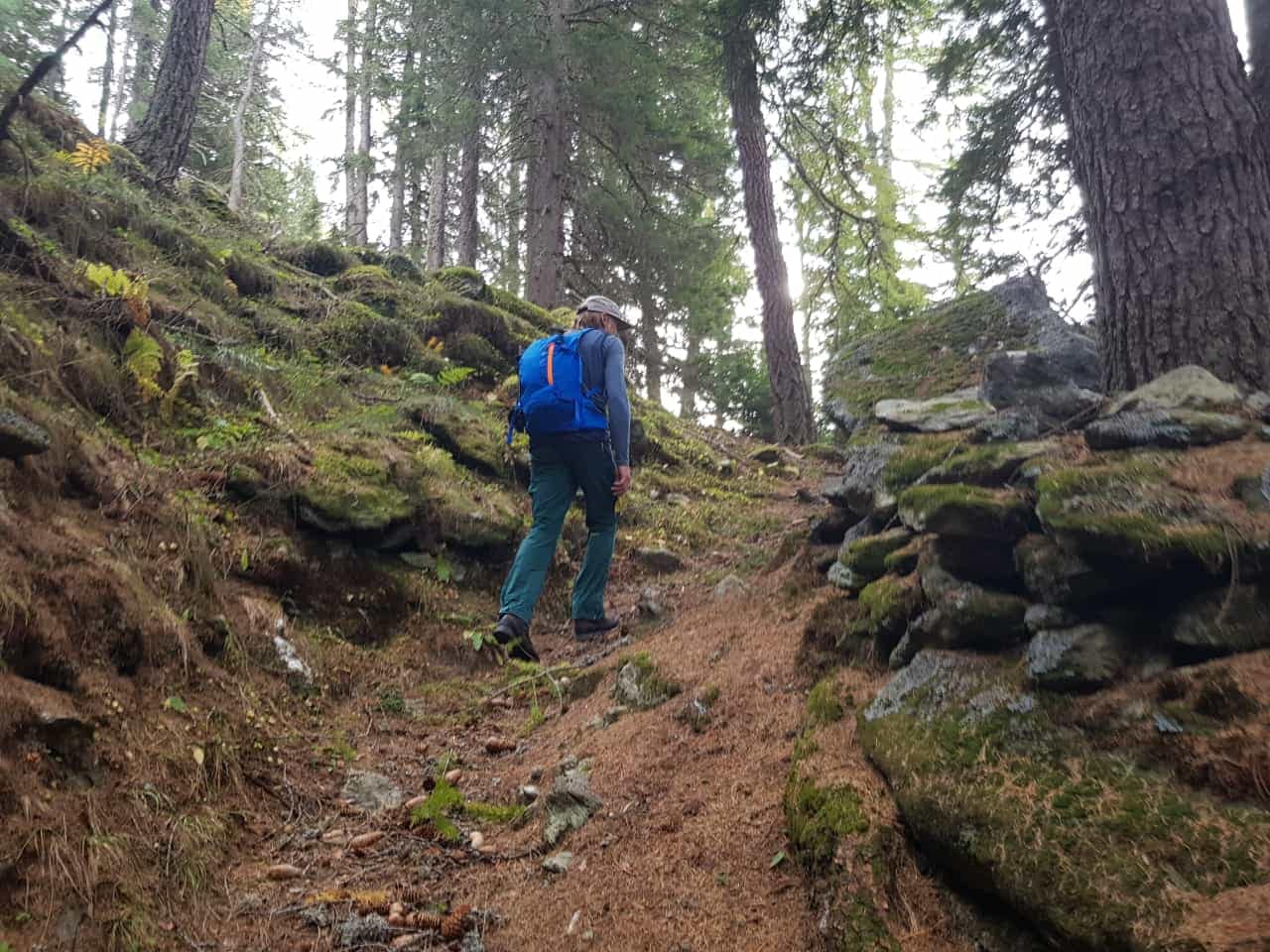 Entlang der Aufstiegsroute sind wir größtenteils wieder abgestiegen. Im unten Teil haben wir tatsächlich aufgrund des Wetters etwas abgekürzt, sei es über die Almwiese und durch den unteren Wald.