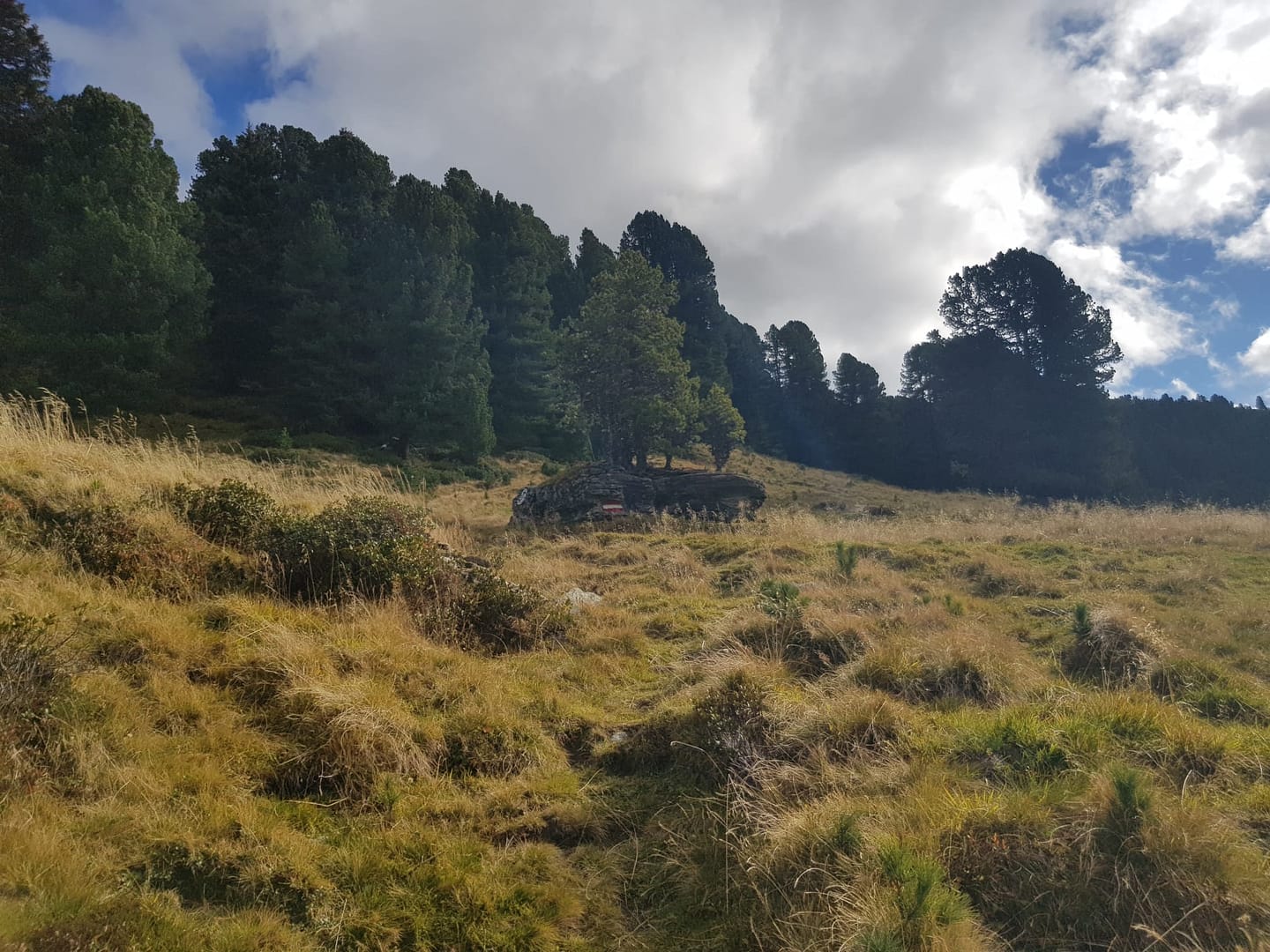 In einer Linkskehre im Almdorf verlassen wir die Forststraße (Beschildung zum Hirzer vorhanden) und von da weg geht es über einen Pfad durch dichten Wald und mit ALmrosenstauden bewachsen in südöstliche Richtung weiter. Schlussendlich erreicht man den Pofers Hochlager auf ca. 2.130 m.