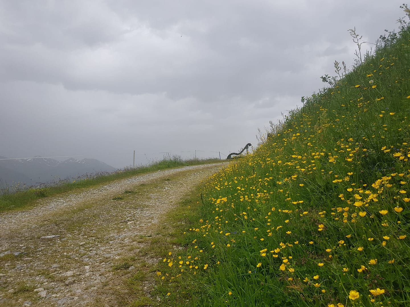 Von der Bergstation aus folgen wir den Wanderwegen in südöstlicher Richtung. Nach etwa 800 Metern biegen wir von der Forststraße nach rechts auf einen Wanderpfad ab, der zunächst über Wiesen und dann durch einen leichten Mischwald führt. In einem sanften Rechtsbogen geht es weiter hinauf zum Heimjoch.