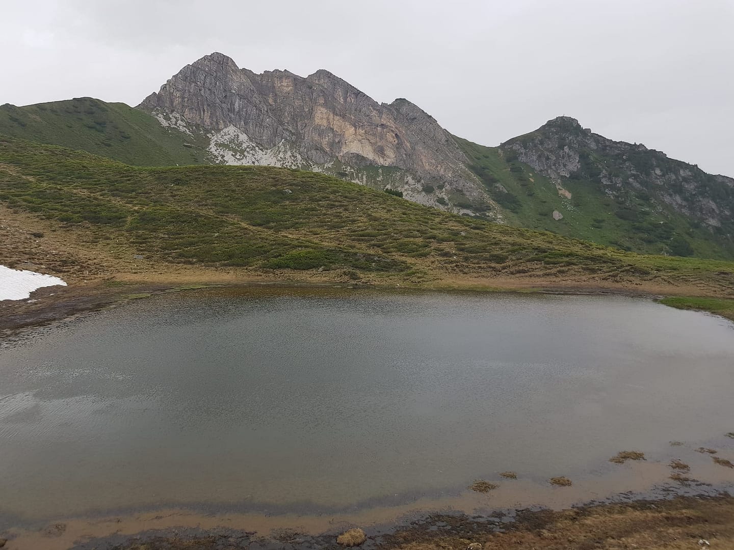 Durch morastigen Boden und vorbei an einem kleinen See gelangen wir auf 2.240 Meter Höhe auf den Kamm, der nordwestlich zum Gipfel verläuft. Die letzten Meter werden steiler und führen nach Westen zum Gipfel, wo man einen tollen Ausblick hat.