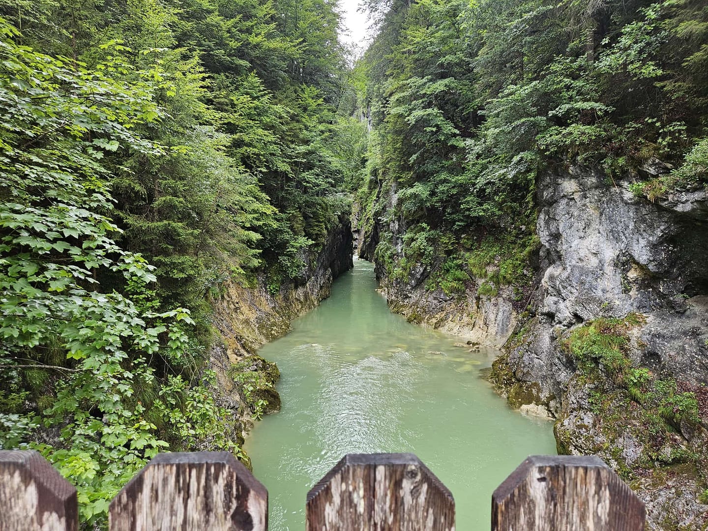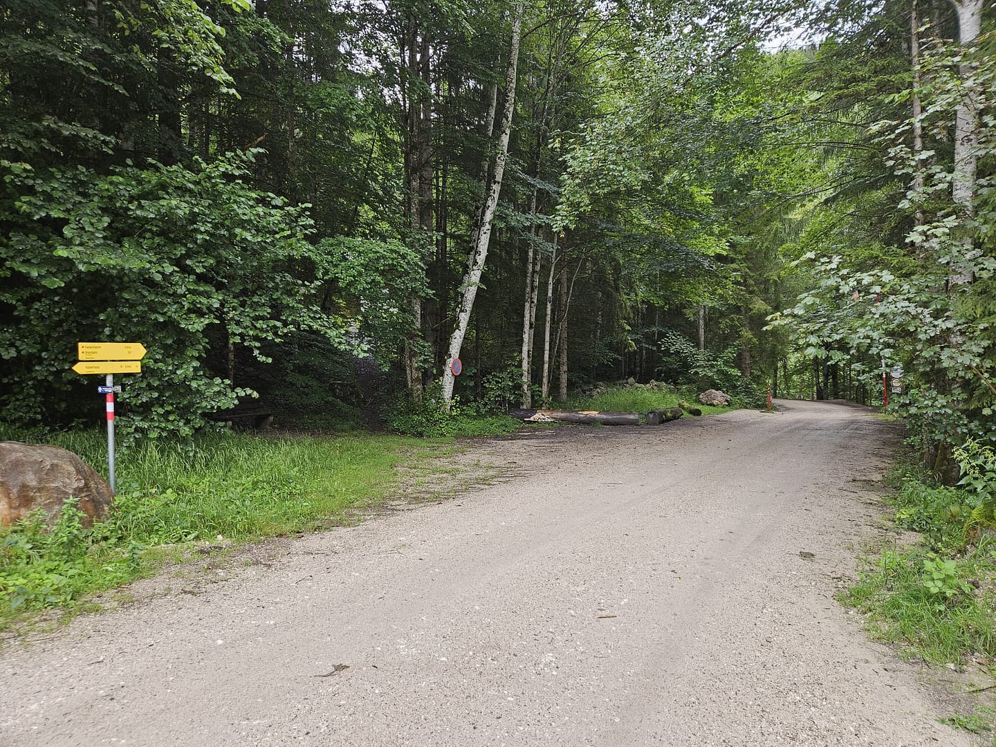 Vom Parkplatz aus folgen wir der Beschilderung über die breite Forststraße zur Klamm, die wir in nur wenigen Minuten erreichen. Der Eingang ist mit Holzwänden versehen, um zu verhindern, dass Fahrräder hindurchfahren – anscheinend ist dies in der Vergangenheit schon vorgekommen. Für den Eintritt in die Klamm selbst muss man nichts bezahlen.