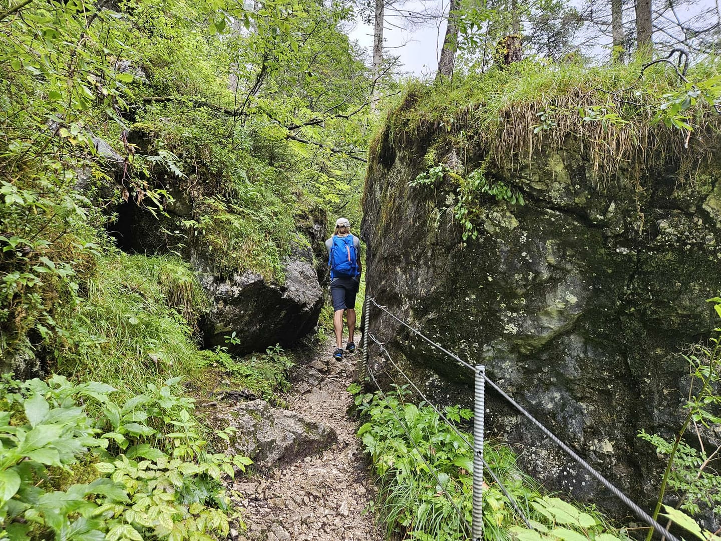 Ein Steig führt über felsigen und gerölligen Boden auf der linken Seite der Klamm entlang, gesichert durch Drahtseile, wo immer es möglich ist. An einer Stelle wurde der Weg sogar durch den Felsen geschlagen, sodass man weiter in die Klamm gelangt. Es ist ein tolles Erlebnis und eine faszinierende Schlucht. Diese kann man auch direkt vom Wasser bestaunen, denn hier gibt es auch die Möglichkeit zum Canyoning.