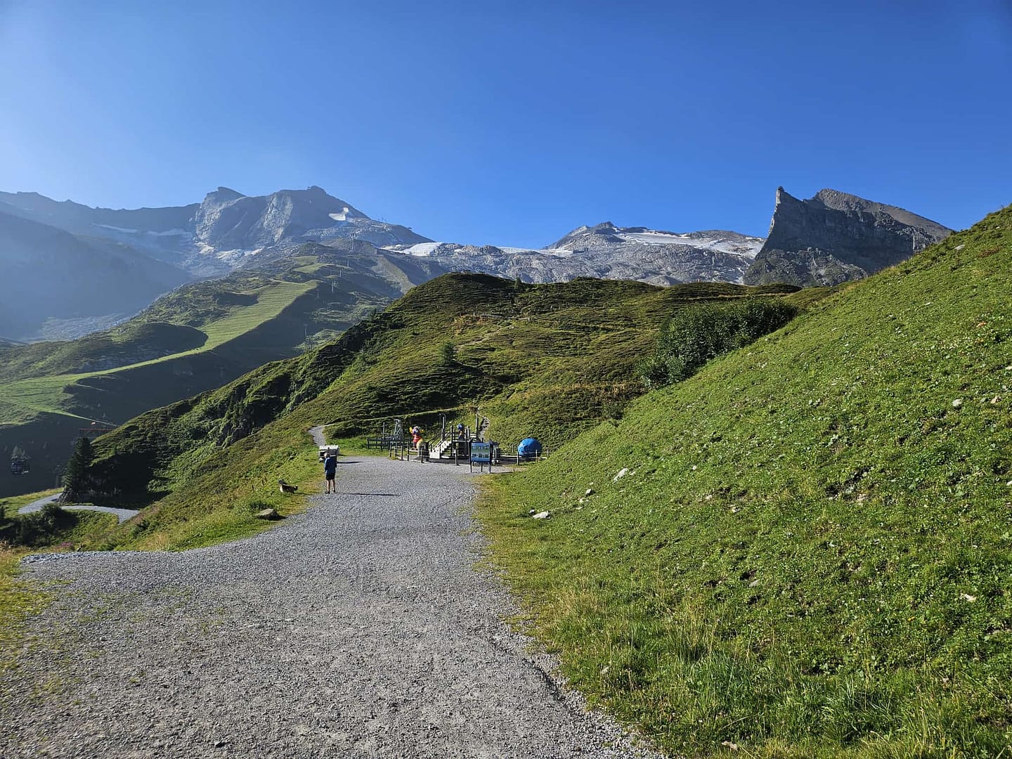 Von der Bergstation der 8er Sommerberg Bahn aus folgen wir den Wegweisern zur Kasererscharte. Beim Aufstieg passieren wir die Luis Gletscherfloh und die Kugelsafari – ein besonderes Highlight für Kinder, die oben für 2 € eine Kugel erwerben können. Auf 2.085 m Höhe nehmen wir den Wanderpfad, der nach Südwesten führt. In leichtem Anstieg verläuft der Weg entlang der Flanke der Frauenwand, wo uns wunderschöne Bergblumen begleiten und wir immer wieder Murmeltiere in den Wiesen beobachten können.