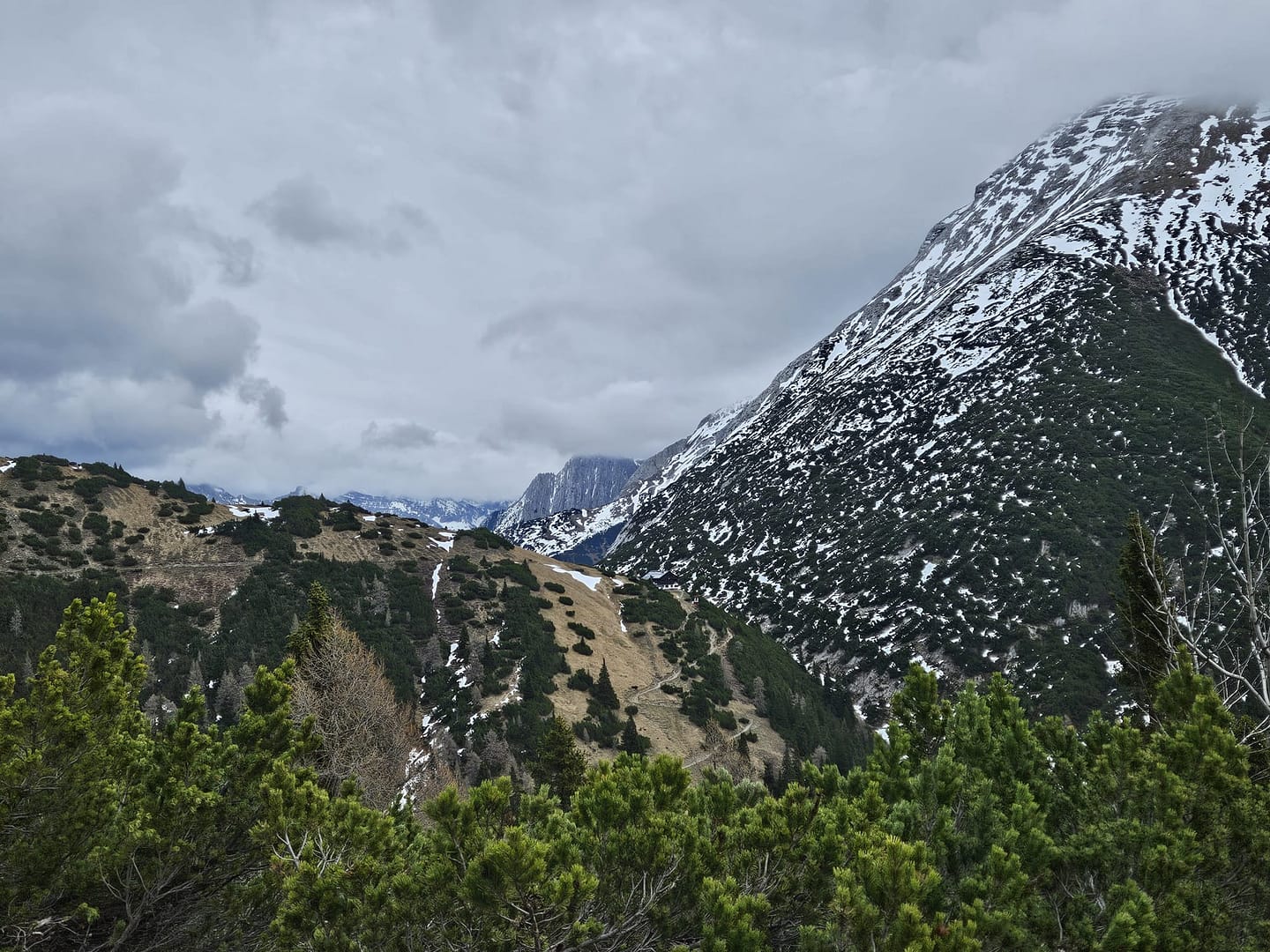 Der Abstieg erfolgt über den Grat, der in einem abwechslungsreichen Auf und Ab über den Garbergskopf und Brunstkopf verläuft. Auch hier sind die Spuren des Wetters spürbar – einige Wegabschnitte scheinen durch Schneelawinen oder Geröllrutsche in Mitleidenschaft gezogen worden zu sein. Zurück auf der Forststraße windet sich der Weg schließlich bis hinunter zum Krankenhaus – und von dort ist es nur noch ein kurzes Stück zurück zum Auto.