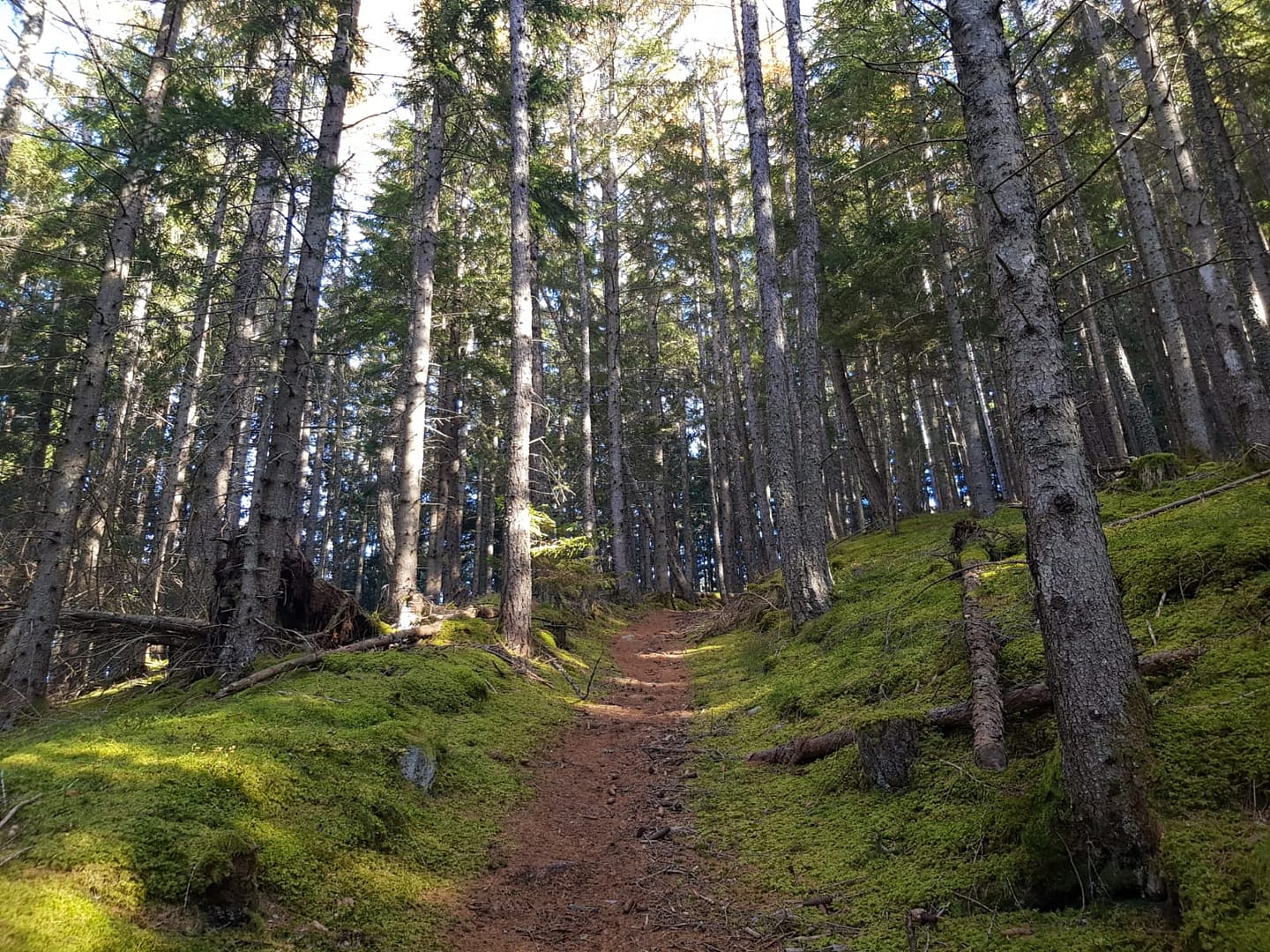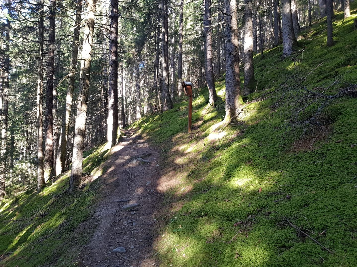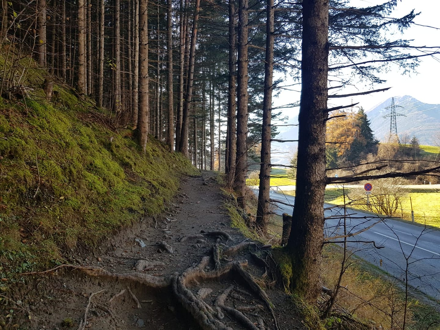 Vom Parkplatz am Straßenrand folgt man den schmalen Weg entlang der L38 nach Patsch. Es gibt immer wieder kleine Abzweigungen und Pfade, deswegen bin ich mir nicht so sicher, ob es sinnvoll ist einen Weg zu beschreiben. Ich wollte aufjedenfall die Forststraße vermeiden, auf welche sehr viele Biker unterwegs waren, und habe immer mal wieder aufs GPs geschaut um mir einen neuen Weg durch den Wald zu suchen. Sobald der Wald etwas lichter wurde bin ich auf die Piste umgestiegen, denn ich wollte die letzten Strahlen am Nachmittag in der sonne genießen.