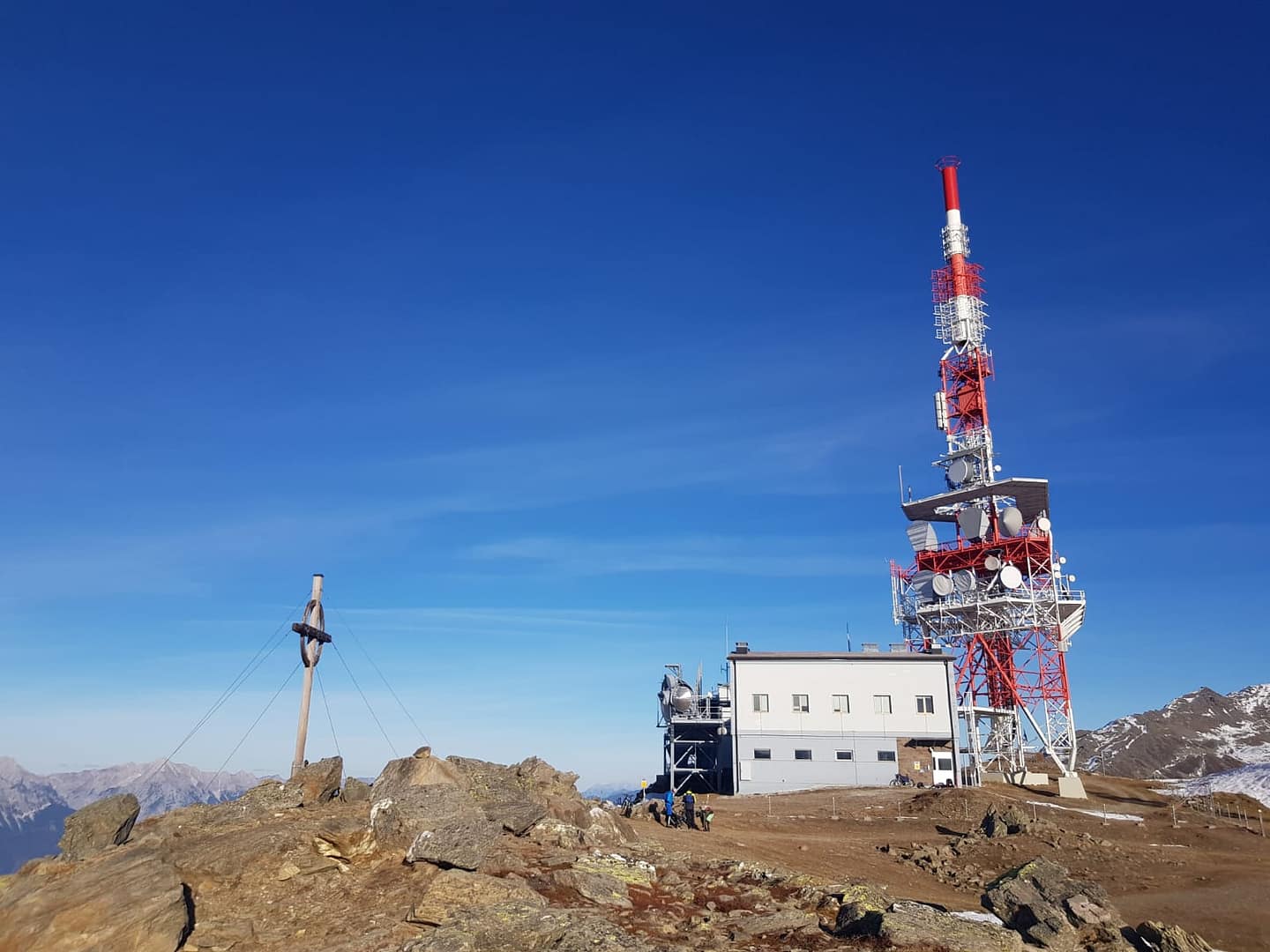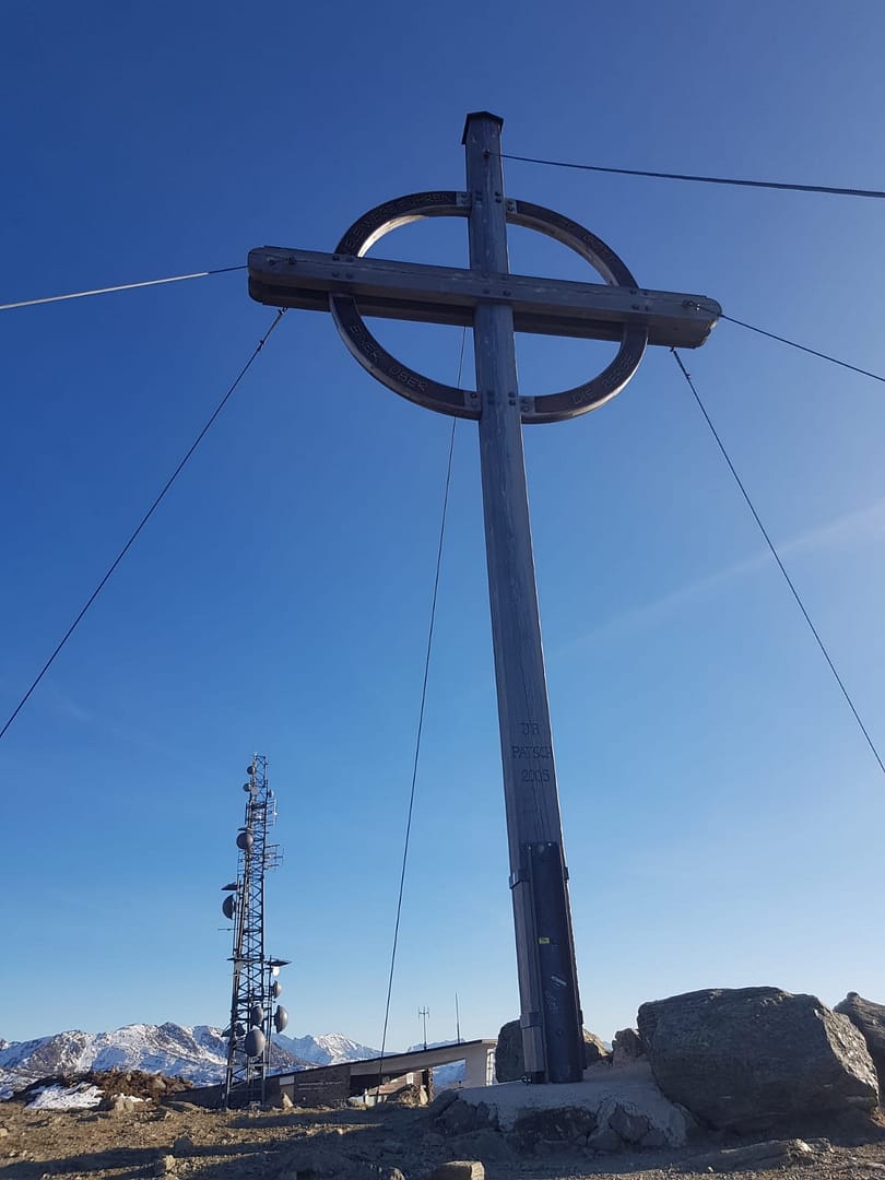 Ab dem Patscherkofel Schutzhaus wird der Weg steiniger und felsiger und führt in Serpentinen hoch zum Gipfelkreuz des Patscherkofel. An sich ist das Kreuz alles andere als Klein, aber wie auf dem zweiten Bild zu erkennen doch um einiges kleiner als die Antenne. Auf dem Platteau hat man einen super schönen 360° Ausblick.