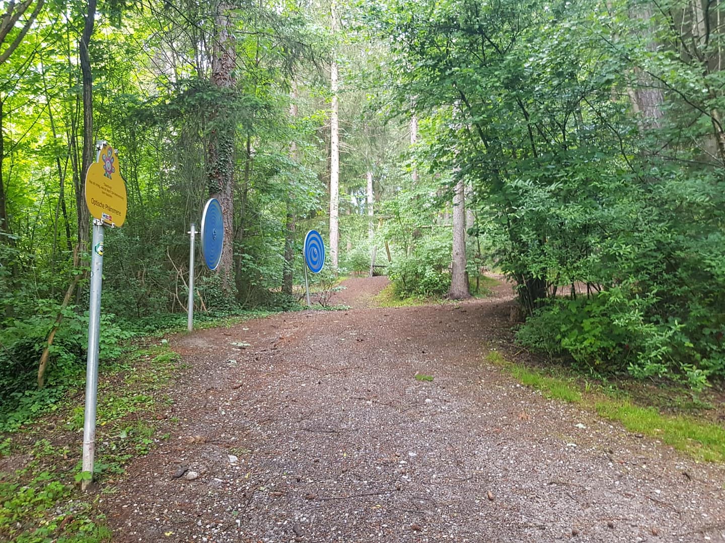 Zuerst peilen wir die Rumer Alm an, vom Parkplatz führen mehrere Wege dort hin. Ich habe den Weg links vom Toilettenhäuschen genommen und bin über den Spielplatz inkl. Barfußpfad und andere tolle erlebnisreiche Aktionen für Kinder gegangen. Diesen Weg folgend geht es bis zu einer sternförmigen Kreuzung, welche in gerade Linie auf einen sehr schmalen Pfad führt. Den rechten Weg mit der Beschilderung „Sennenmahd / Rumer Alm“ führt zum gleichen Ziel und ist wahrscheinlich ein bisschen einfacher zu gehen.
