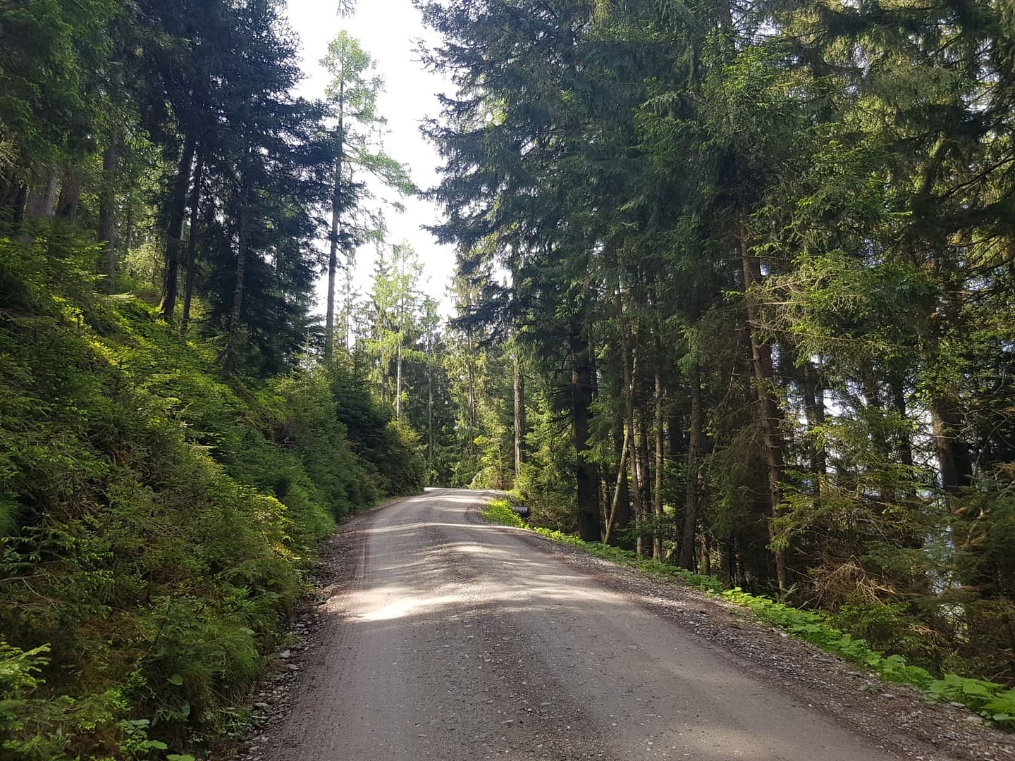 Auf einer Höhe von 1.370 Metern stoßen wir wieder auf die Forststraße, der wir in Serpentinen bis zur Brunnalm auf 1.950 Metern folgen. Auf dieser Strecke begegnen uns viele E-Biker.