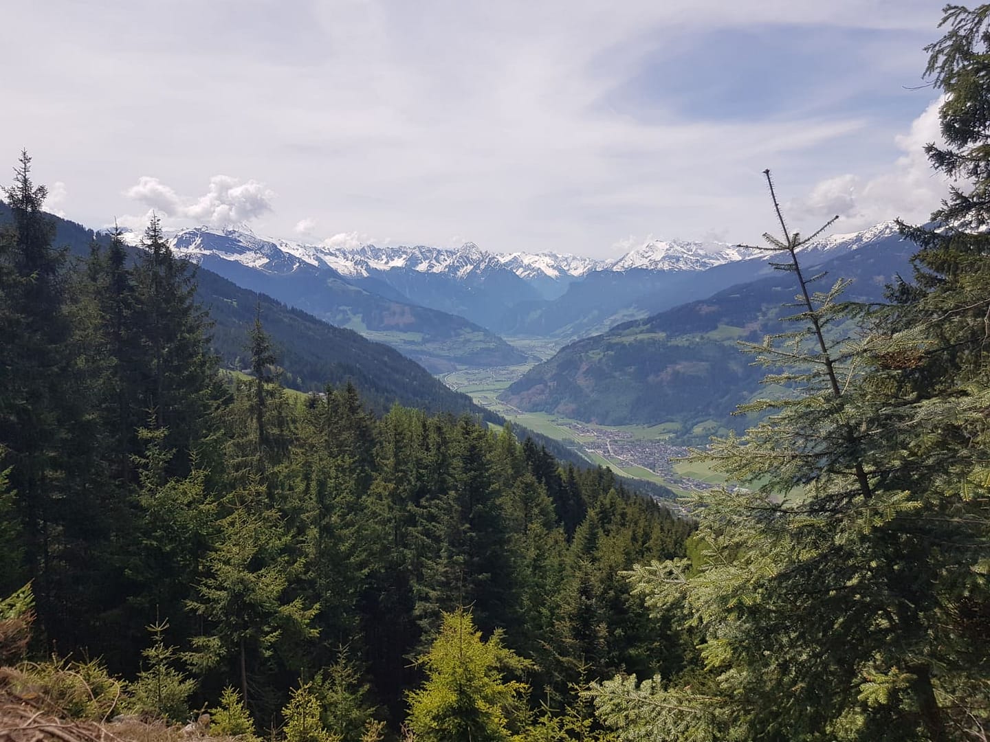 Für etwa 200 Höhenmeter kämpfen wir uns den Hang durch den zugewachsenen Wald hinunter, bevor wir schließlich wieder die Forststraße erreichen, die uns zurück zum Auto führt. Diese Tour bietet eine spannende Mischung aus einsamen Pfaden und beeindruckenden Ausblicken, die Forststraßen finden wir eher bescheiden.