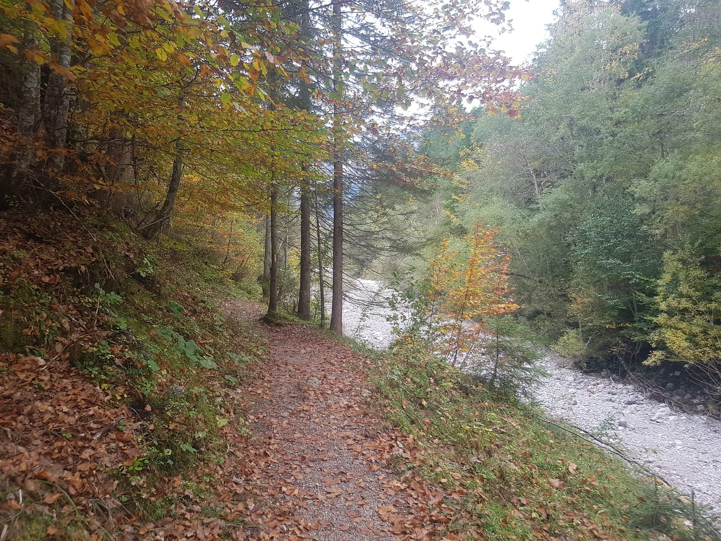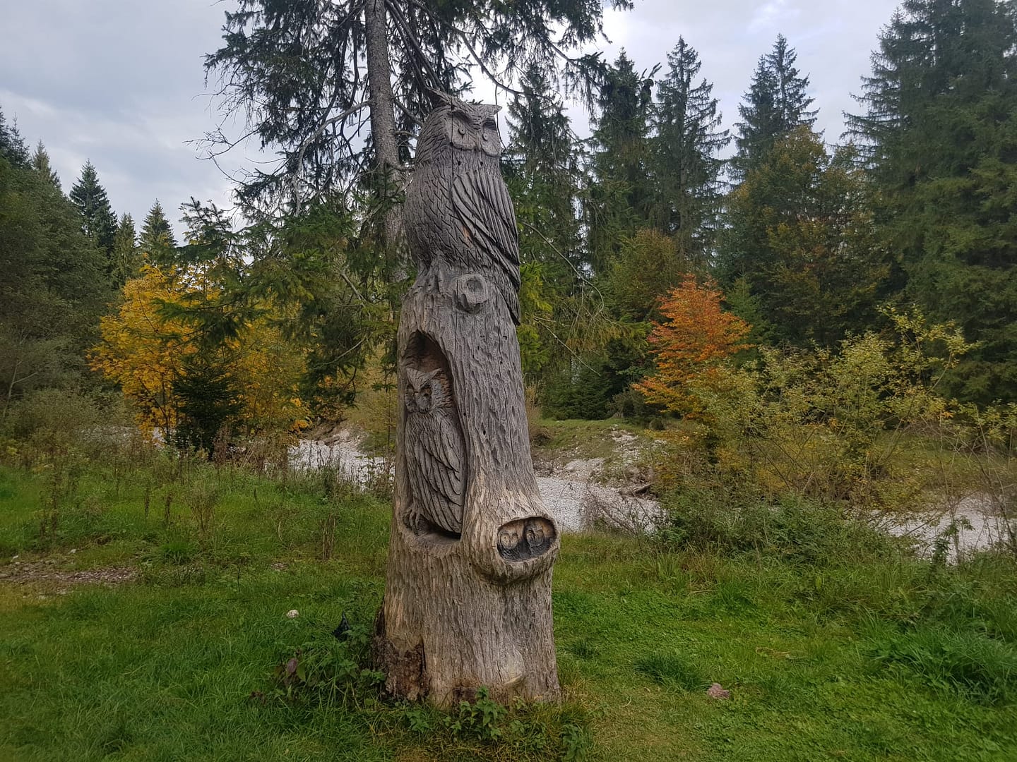 Vom Parkplatz folgt man der Beschilderung Richtung „Seekarspitze – Seekaralm“, zuerst quert man den ausgetrockneten Oberaubach, sagt den Eulen am Baustamm „Servus“ und nach ca. 350 m erreicht man eine Weggabelung. Geradeaus geht man über die Forststraße sehr ausschweifend zur Seekaralm rauf, wir hingegen haben den rechten Weg über den Steig für den Aufstieg gewählt. Anfangs relativ flach am Oberaubach durch das Oberautal hindurch und dann über eine schwungvolle Brücke. Hinter der Brücke geht man über einen bewaldeten Rücken auf einem gut markierten Steig steil hinauf. Auf 1.440 m kreuzt man die Forststraße und das freie Gelände dahinter bringt einen wenig späterzur Seekaralm, die auf 1.500 m liegt. Ich habe den Weg durch den Wald bis zur Alm sehr genossen, es ist sehr zu empfehlen.
