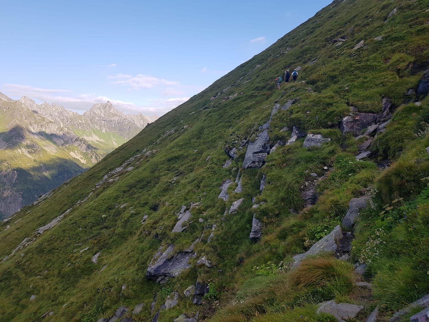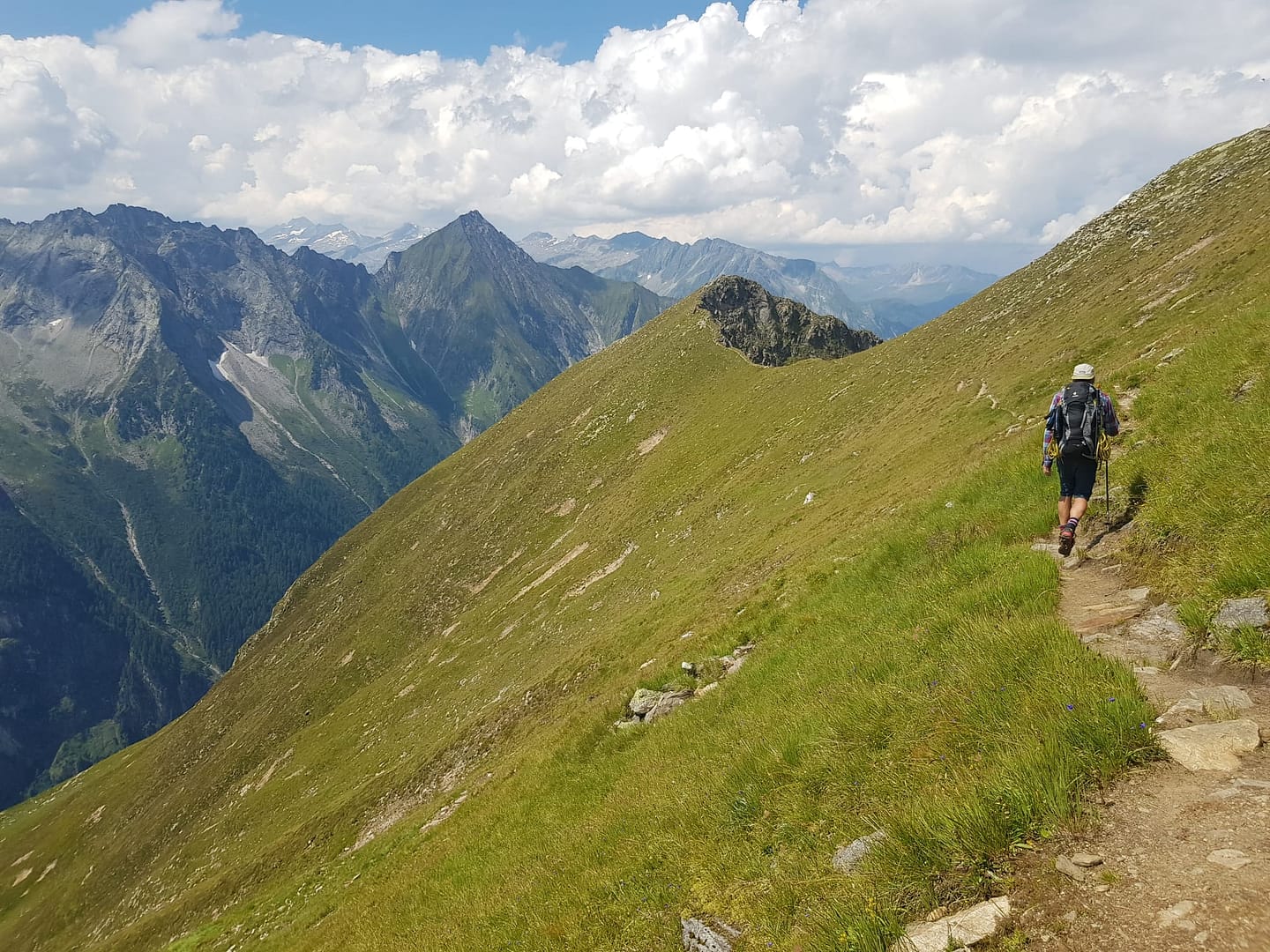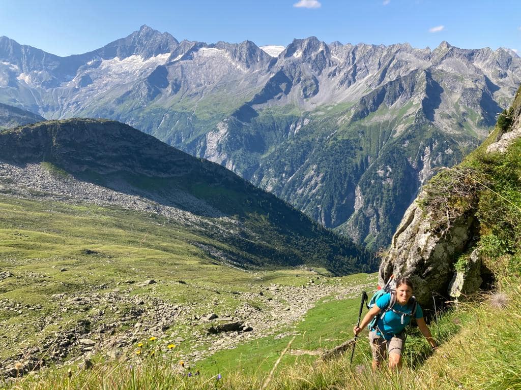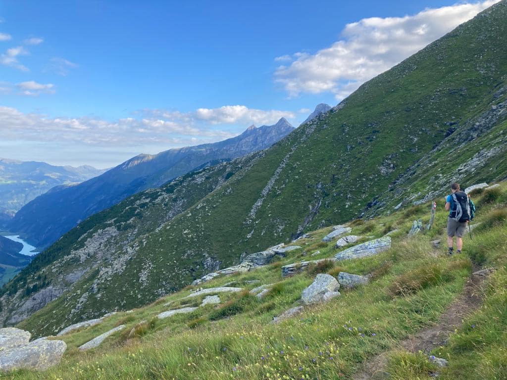 Diese Etappe hat viele Namen, ich denke die meisten gehen diesen auf ihrer Runde auf dem Berliner Höhenweg / Zillertaler Runde, aber Siebenschneidensteig beschreibt wohl besser was sich hinter diesem Weg verbirgt. Sieben Schneiden, das sind Seitengrate der oberhalb verlaufenden Bergkette, müssen bewältigt werden. Dieser Weg ist auch unter anderem unter Aschaffenburger Höhenweg bekannt. Aber mal ehrlich, wieso braucht eine solche Wegstrecke drei (vier) Namen?? – verrückt.
