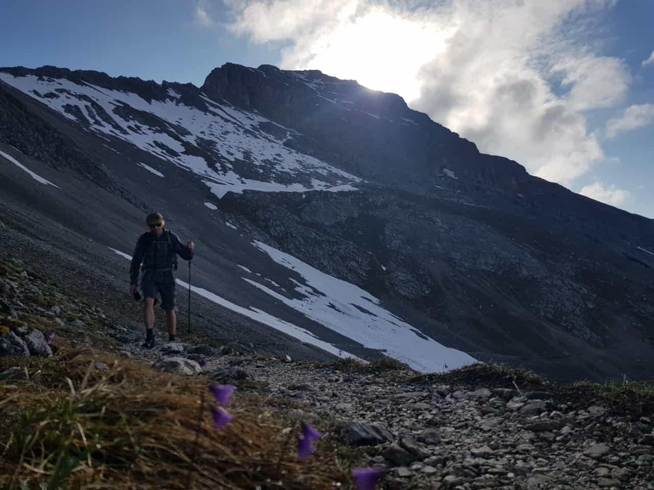Man kann über den Nordgrat, der mit Drahseil gesichert ist, zum Joch absteigem, aber da lag noch so viel Schnee drin, dass wir entlang des Grates am Aufstiegsweg wieder abgestiegen sind.