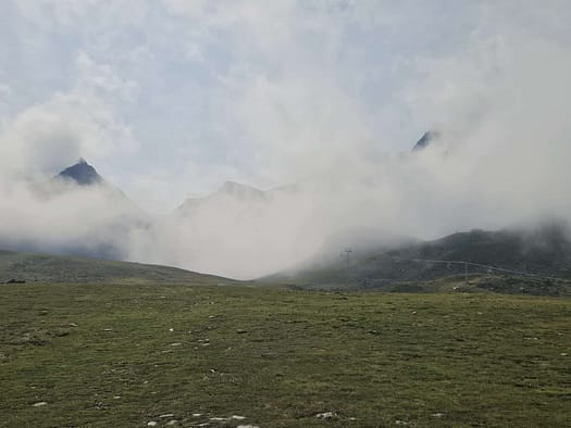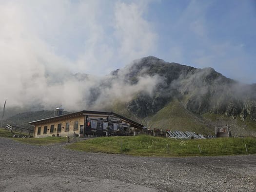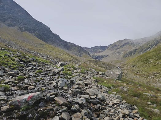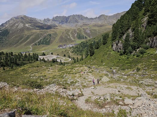 Auf dem Rückweg bin ich ab dem Speicher über den direkten Weg zurück ins Dorf Kühtai abgestiegen. Der Pfad kreuzt dabei mehrfach die Straße, auf der reger LKW-Verkehr herrscht. Auf den letzten Metern gilt es noch einmal ein paar Höhenmeter zu überwinden, bevor der Weg schließlich hinunter zum Parkplatz führt.