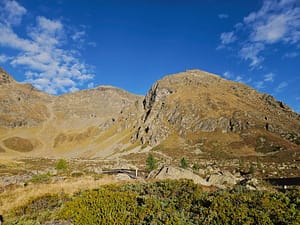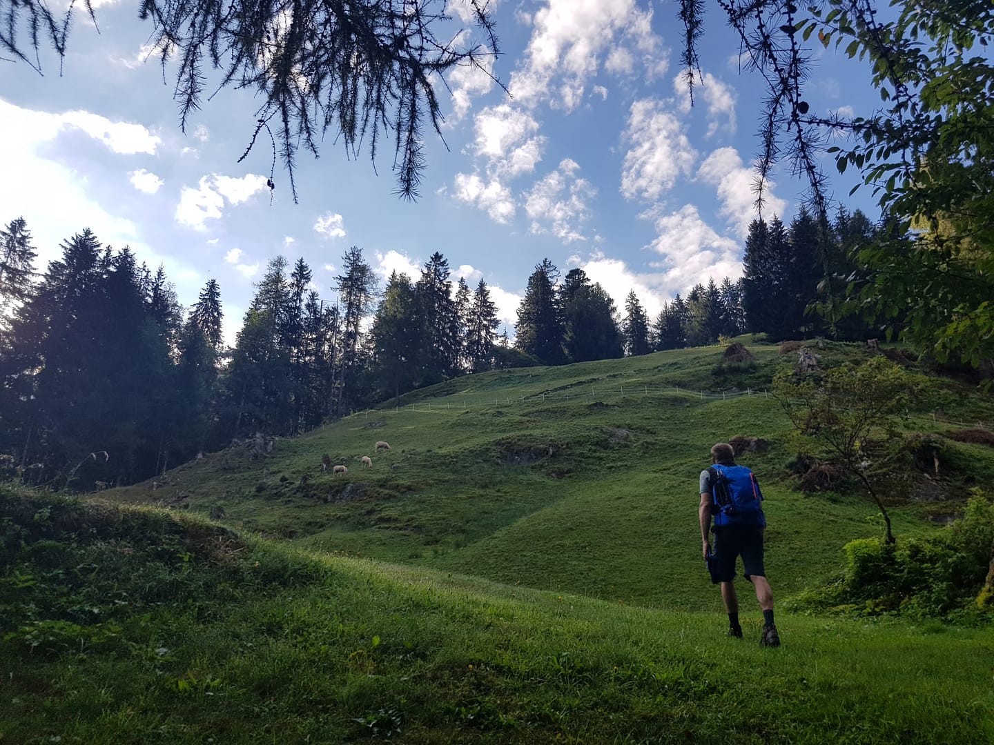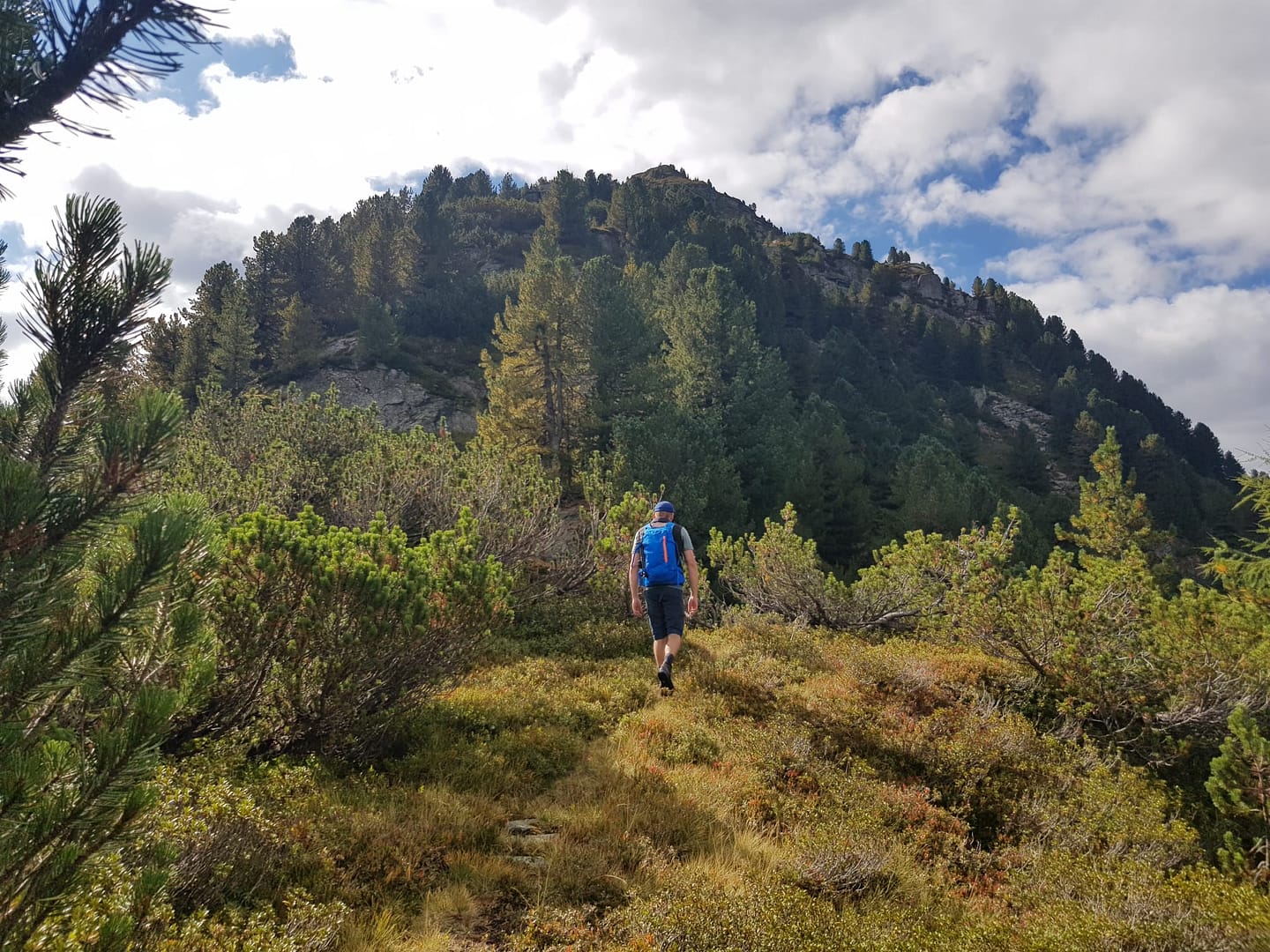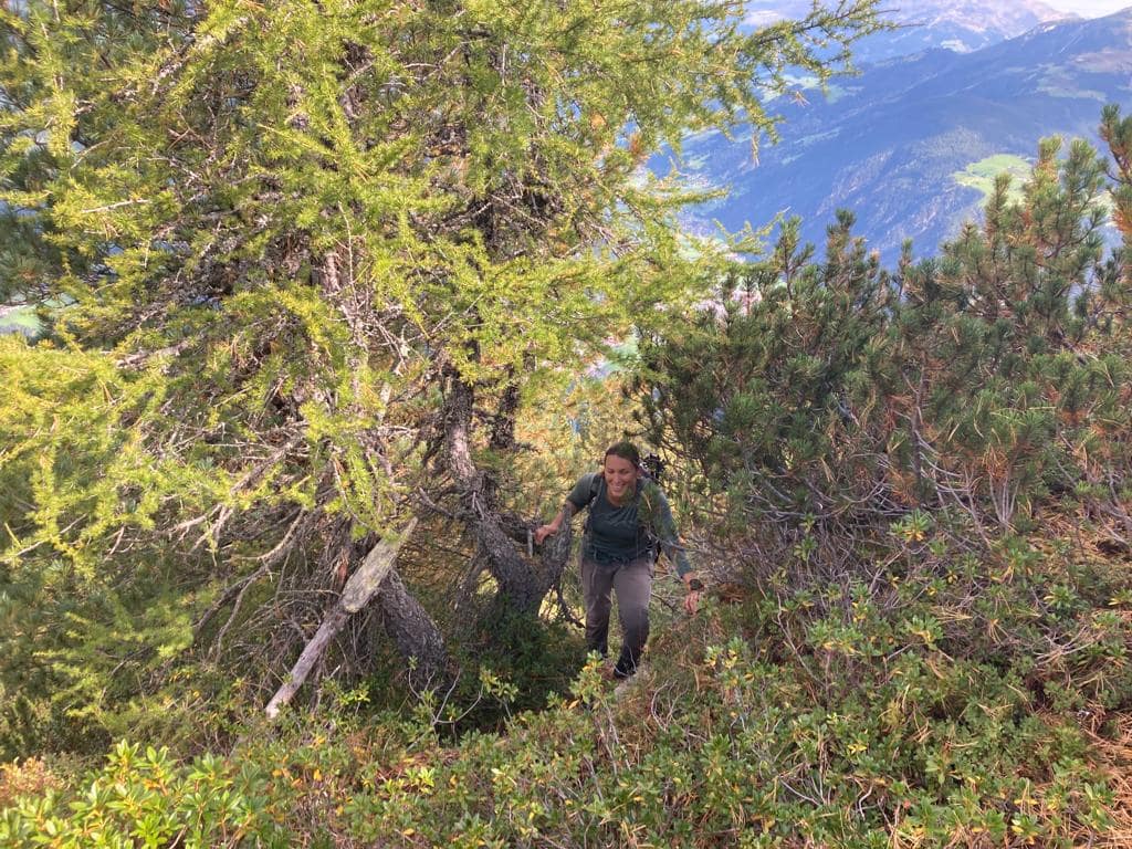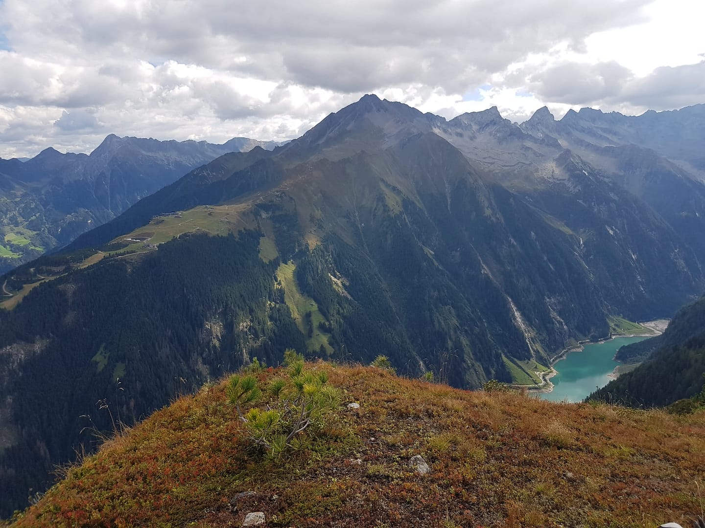Nachdem wir uns ca. 1,3 km durch das Buschwerk gekämpft hatten, verlies uns die Motivation noch an diesem Tag auf den Gipfel aufzusteigen. Ein Paar Gämse sprangen die Wiese vom oberen zum unteren Weg runter und wir dachten nur noch „das machen wir nun auch“. Also sind wir ihnen über Gras, Stock und Stein zum unteren Weg gefolgt und runter gequert. An der Jagdhütte Wandegg kreuzt sich der Weg der von Ginzling hochführt, welchen wir schlussendlich abgestiegen sind.