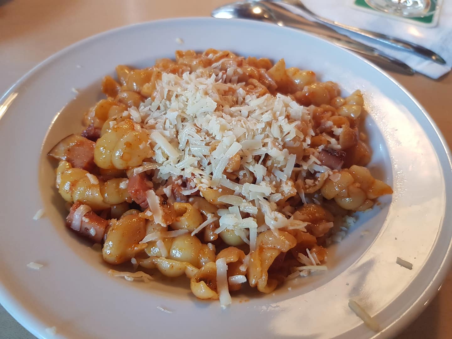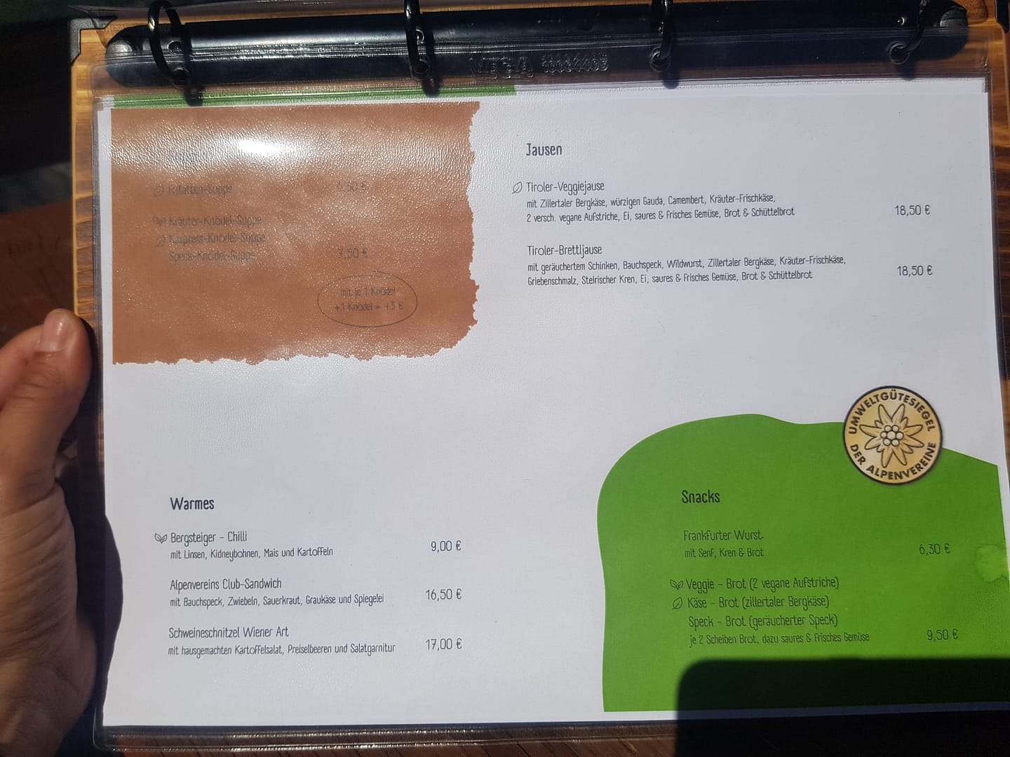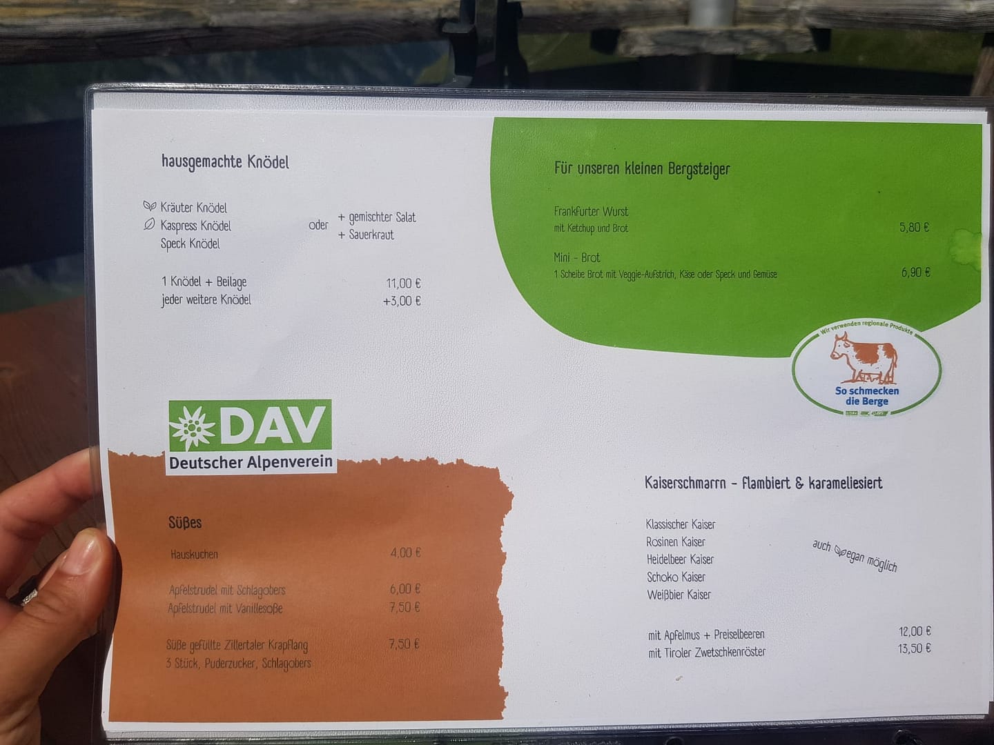 Am Abend gibt es eine Suppe, Salat und eins von vier Hauptgerichte zur Auswah, die täglich gleich bleiben. Der Kaiserschmarn ist gigantisch gut flamiert und karamellisiert. Alle Infos auf deren Webseite.