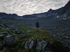 Auf. 2.930 steigen wir auf den Westgrat rauf und klettern (UIAA I) durch die Flanke bis zum Gipfel. ACHTUNG: im oberen Bereich solltet ihr euch eher links halten, dort stehen auch Steinmänner, wir sind etwas vom Weg abgekommen und waren zu weit rechts und dort war es etwas schwieriger zu klettern.