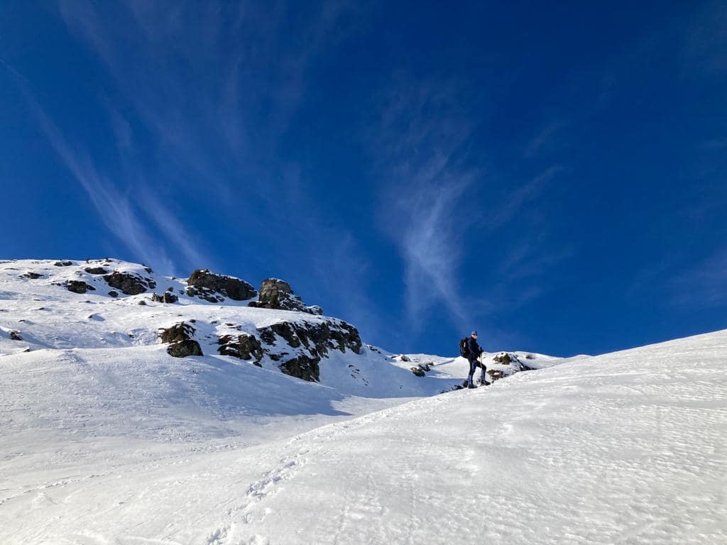 Von der Hütte steigen wir in westliche Richtung in mehrehren Kehren zum Gipfel rauf. Ab und zu sieht man ein paar Wegmarkierungen, aber wir sind dann doch eher nach Gefühl gegangen. Das Gipfelglück und die tolle Aussicht teilten wir uns mit einer kleinen Gruppe Skitourengeher, die von Hochfügen aufgestiegen sind. Abgestiegen sind wir auf dem gleichen Weg.