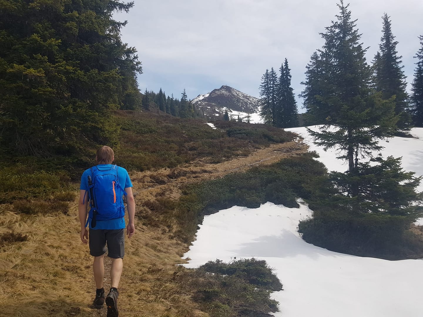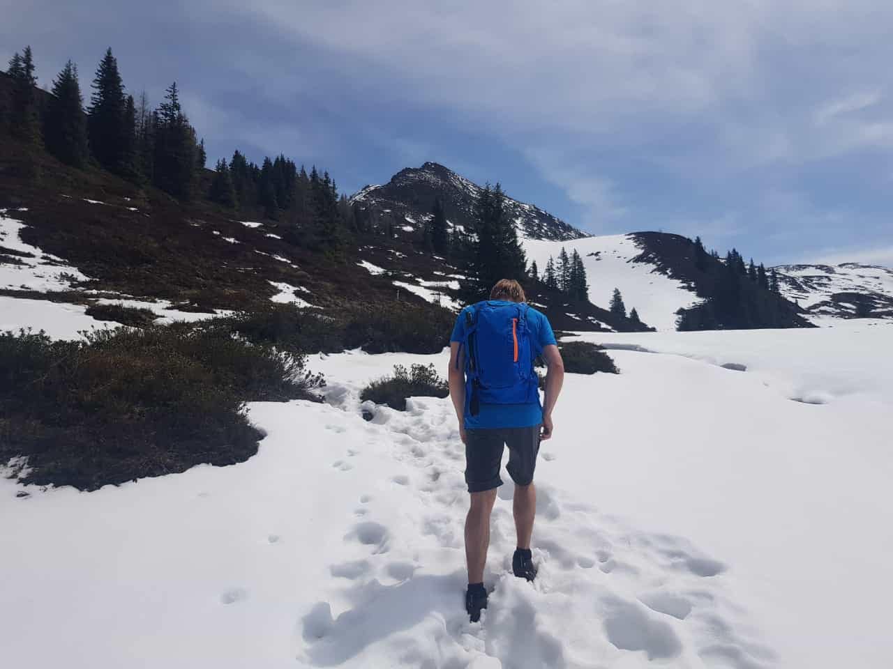 Abgestiegen sind wir Richtung Hornalm und dann runter über die Forststraße zum einen weil der Aufstieg durch die Schneefelder sehr matschig war und weil es knieschonender ist. Im Sommer würde ich den Aufstiegsweg zurückgehen.