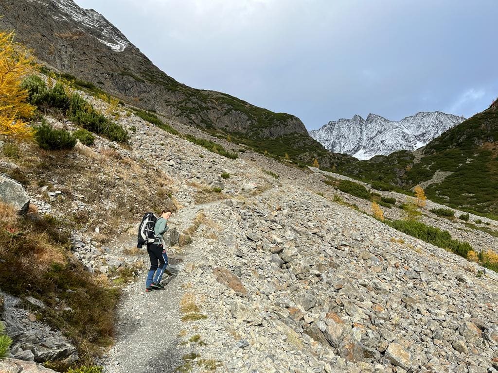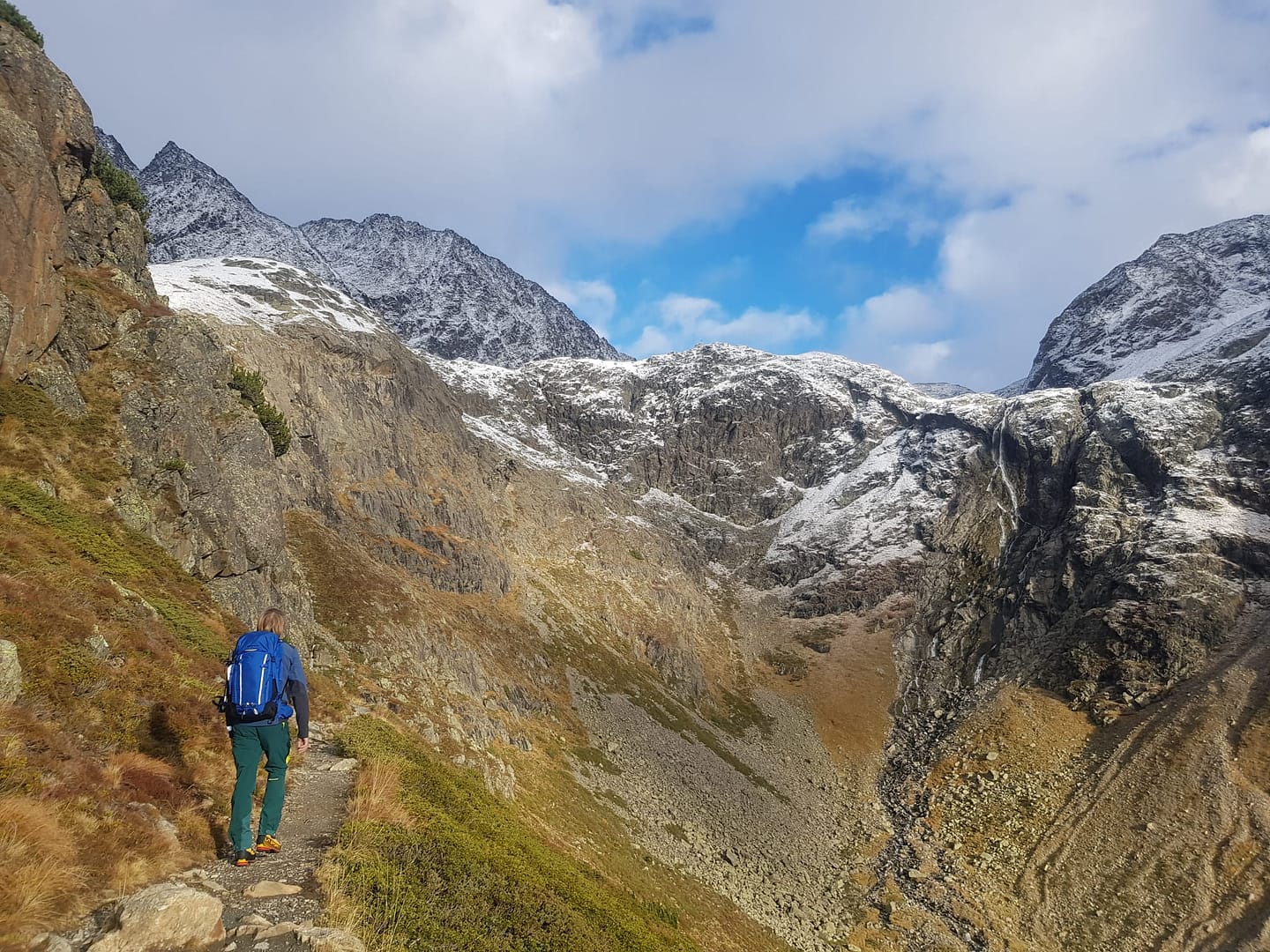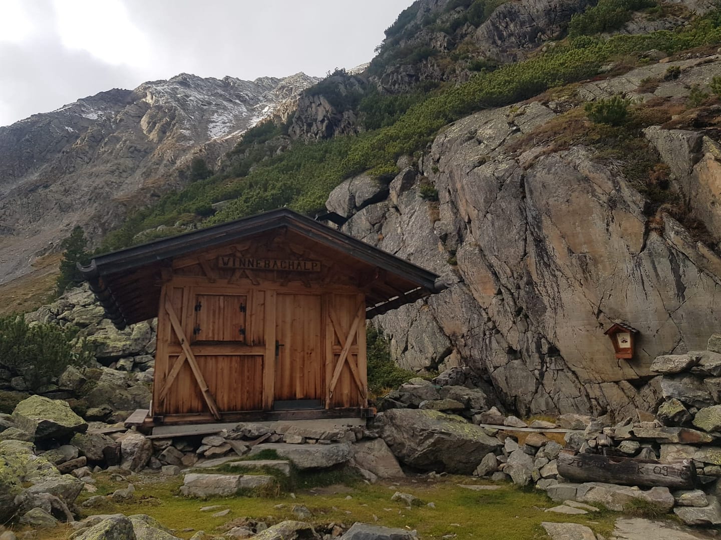 Der Pfad führt an den seitlichen Hängen taleinwärts. Sobald man den Wald hinter sich lässt, erreicht man ein schüttiges Gelände, welches aber gut zu gehen ist. Nach einer Gländestufe geht es ein paar Meter abwärts und an der Winnebachalp vorbei. Das letzte Stück bis zur Hütte wird etwas steiler, aber der Wasserfall auf der rechten Talseite bzw. die wunderschöne Landschaft allgemein lenkt von der Anstrengung ab.