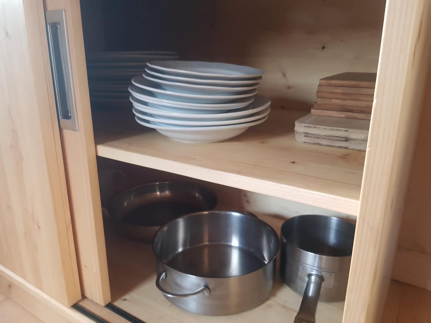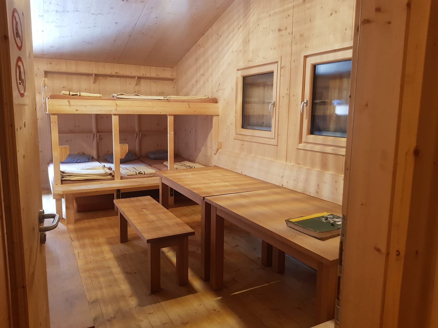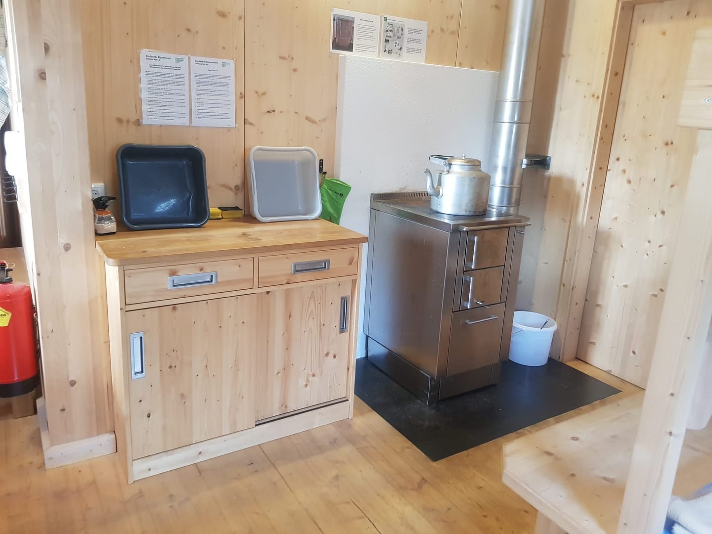 Der moderne Winterraum der Winnebachseehütte ist super ausgestattet. Es gibt 10 Schlafplätze, wobei noch zusätzliche Matratzen unter dem Bettenlager liegen, ein großer Tisch und Bänke laden zum verweilen ein und die Küchenecke gibt auch einiges her: Tassen, Teller, Besteck, Töpfe und Bretter. Überraschenderweise gab es auch Strom, wobei wir uns den Abend mit Kerzen verschönert haben.