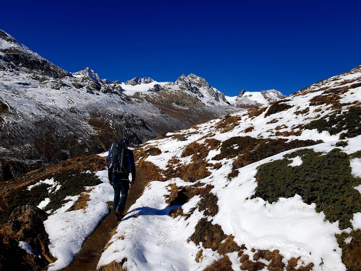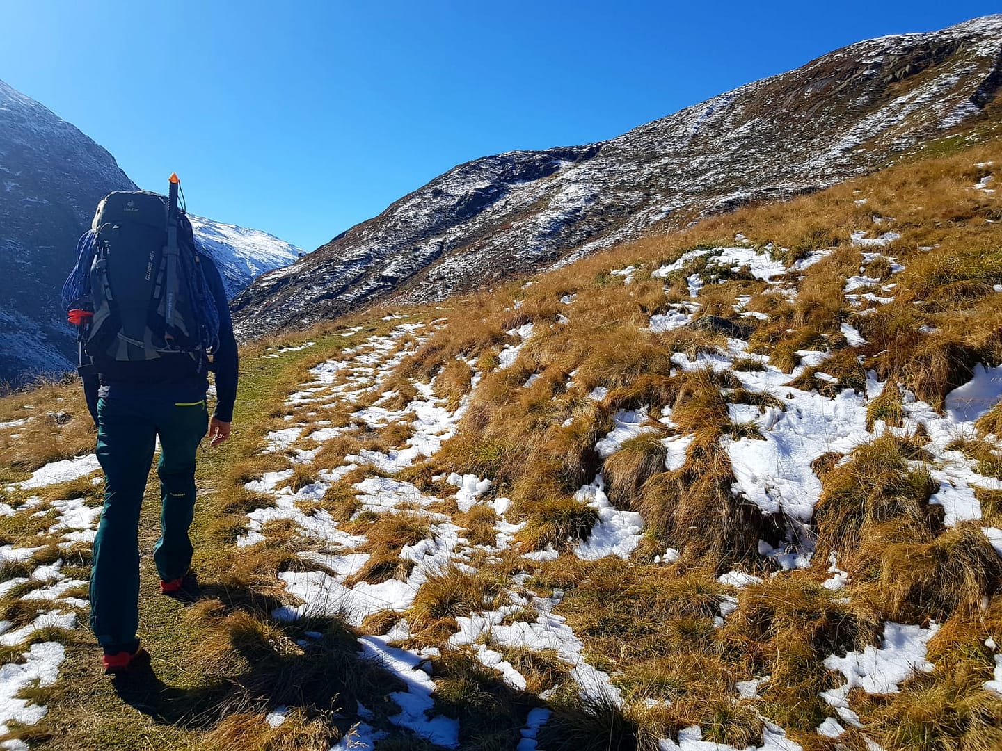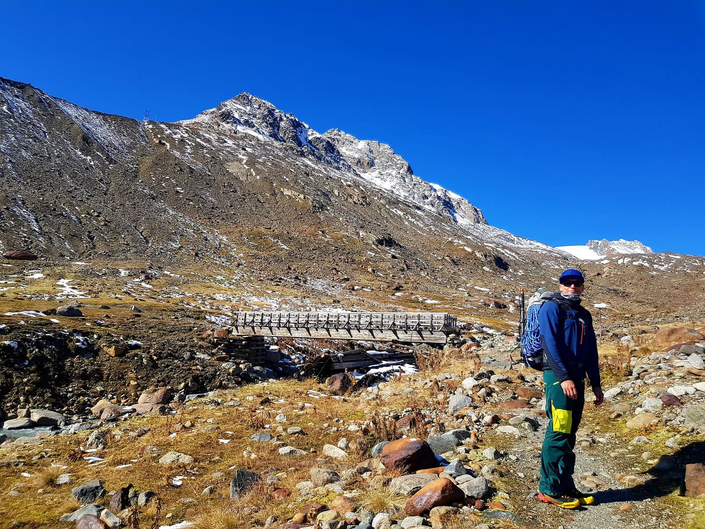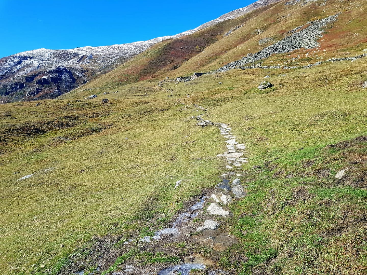 Der Weg führt leicht ansteigend taleinwärts parallel zum Vernagtbach, welchen wir dann später über eine Holzbrücke queren. Danach geht es die letzten Meter über zwei Geländestufen hoch zur Hütte, die am Fuße der Hintergraslspitze liegt.